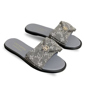 Louis Vuitton x Takashi Murakami Lily Flat Mule Bow Slide Sandals Grey Canvas 1AGVYA
