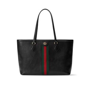 Gucci Ophidia Black Leather Tote Bag with Web Stripe 38cm/15in