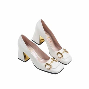 Gucci Wmns White Leather Mid-Heel Pump