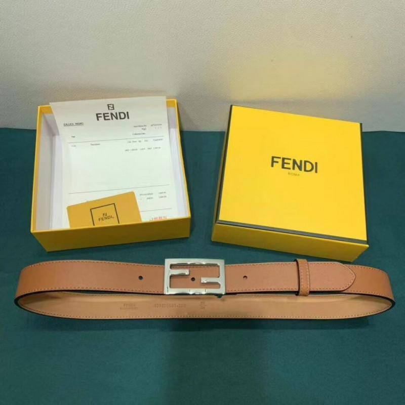 Fendi Baguette 30mm FF Buckle Belt 8C05311 Light Brown
