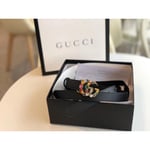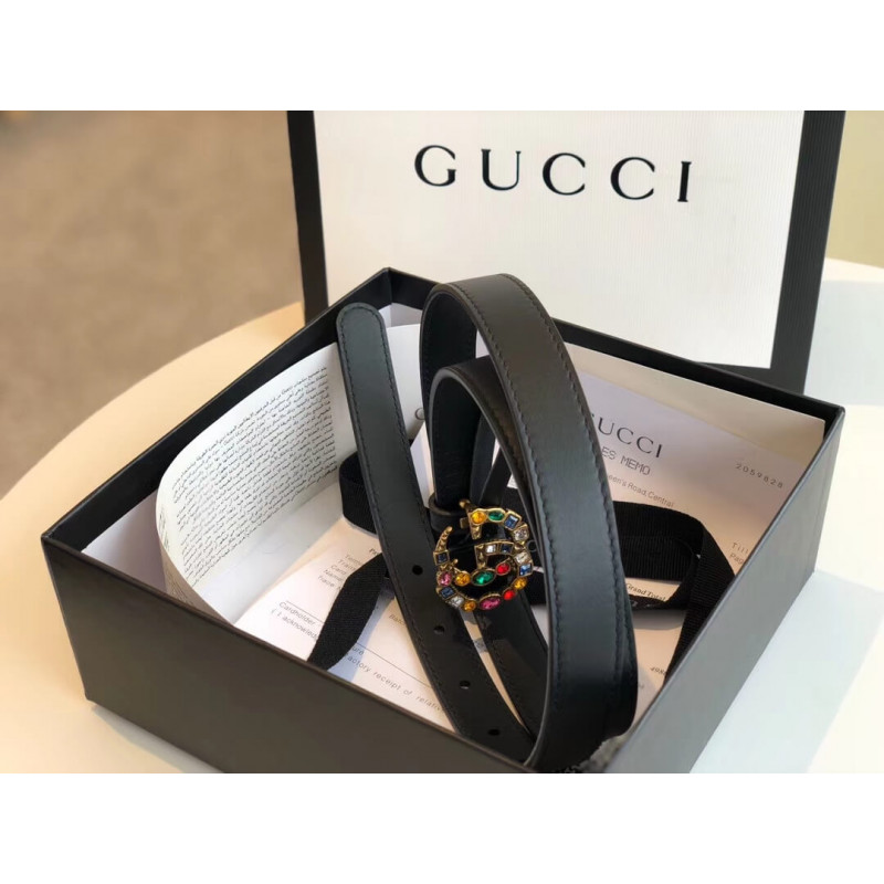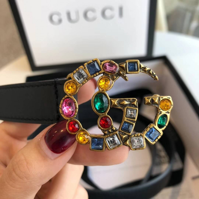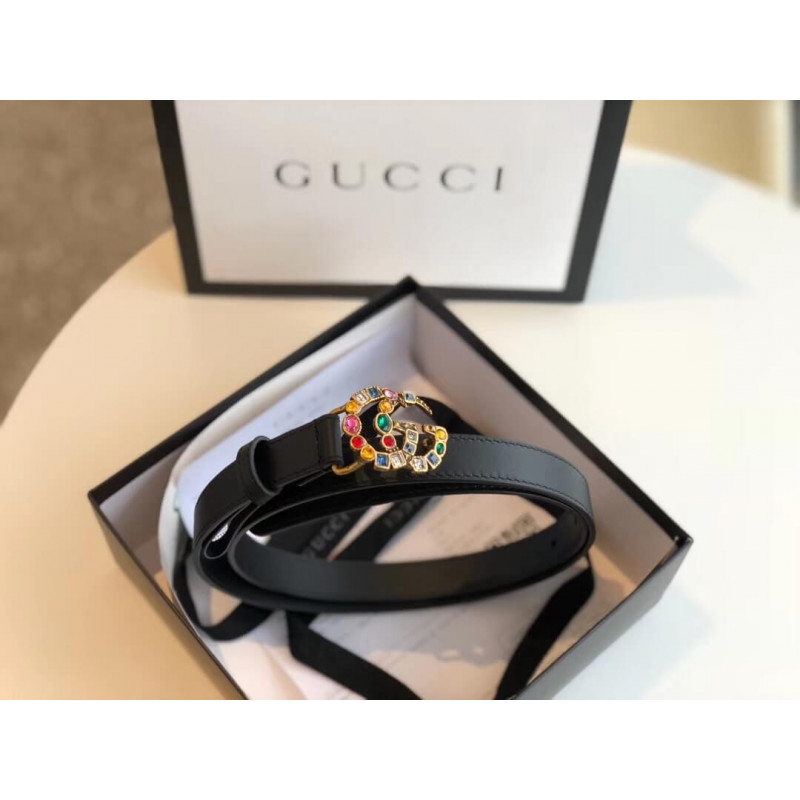 Gucci 20mm Leather Belt With Crystal Double G Buckle 513183