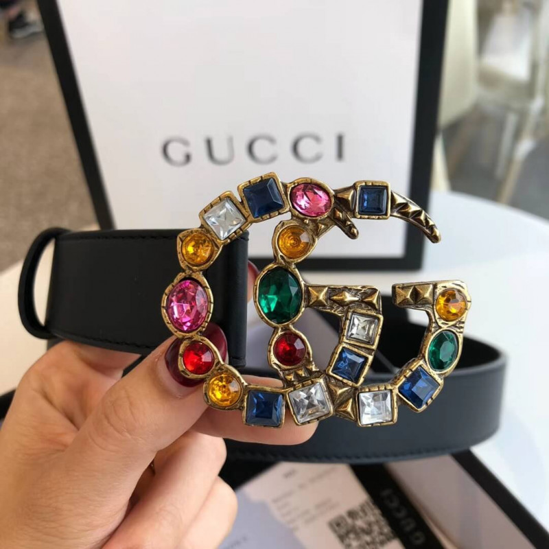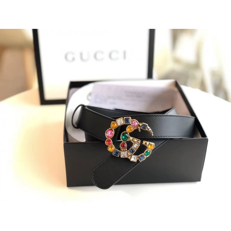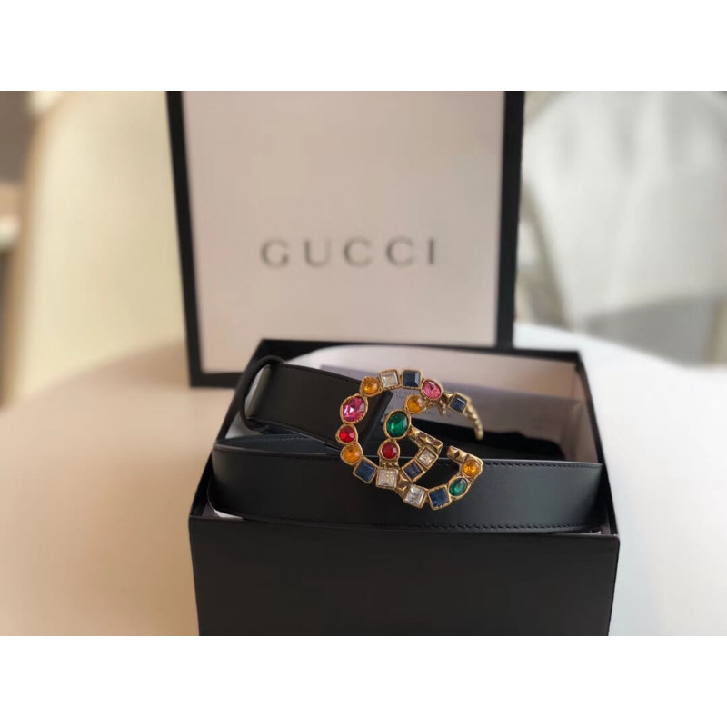 Gucci 30mm Leather Belt With Crystal Double G Buckle 513183