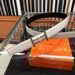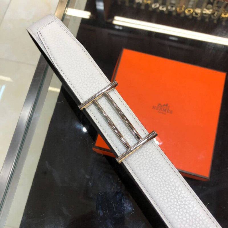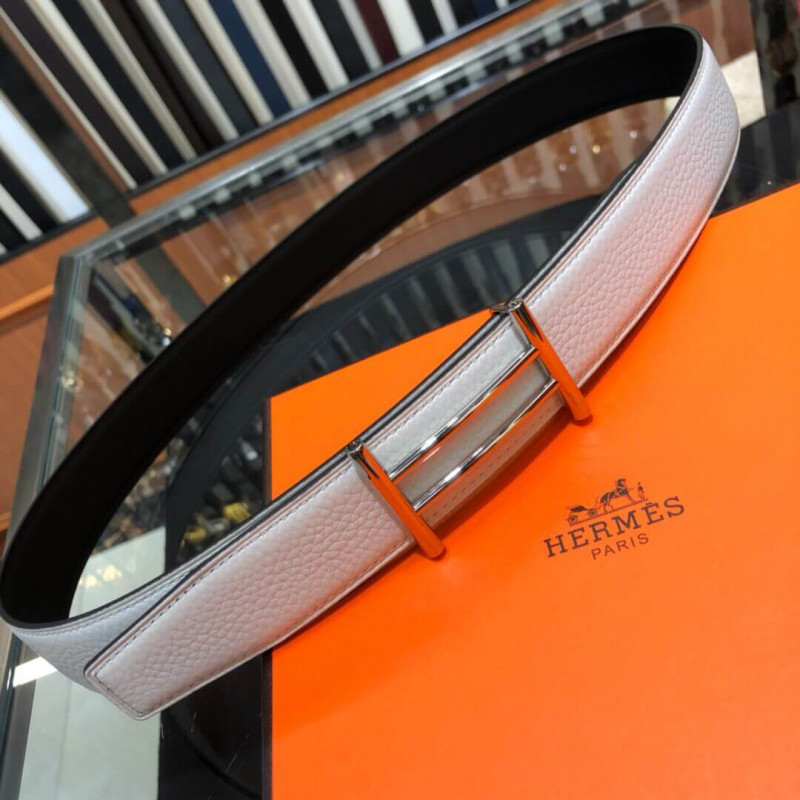 Hermes Rider Belt Buckle & Reversible Leather Strap 32mm H075372 White/Black