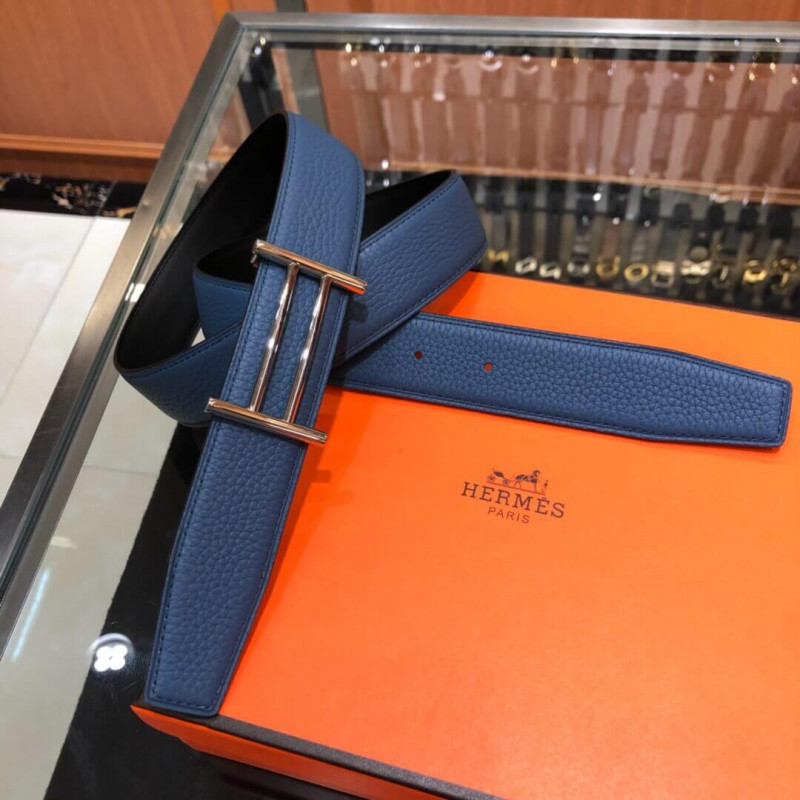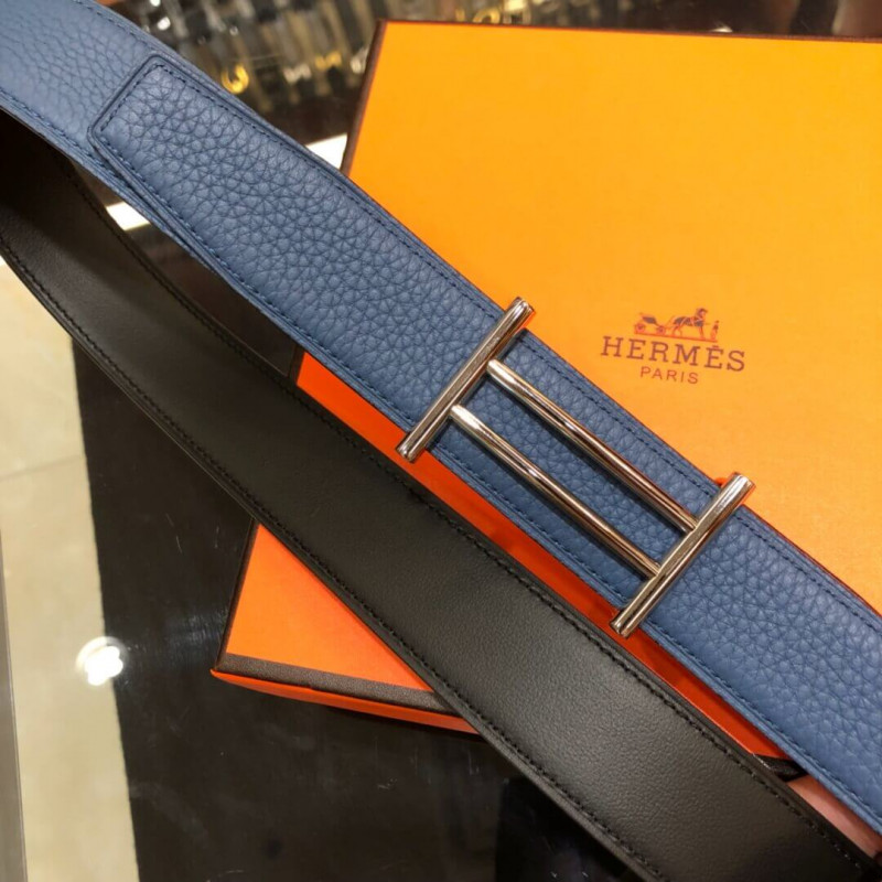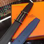 Hermes Rider Belt Buckle & Reversible Leather Strap 40mm H075372 Blue/Black