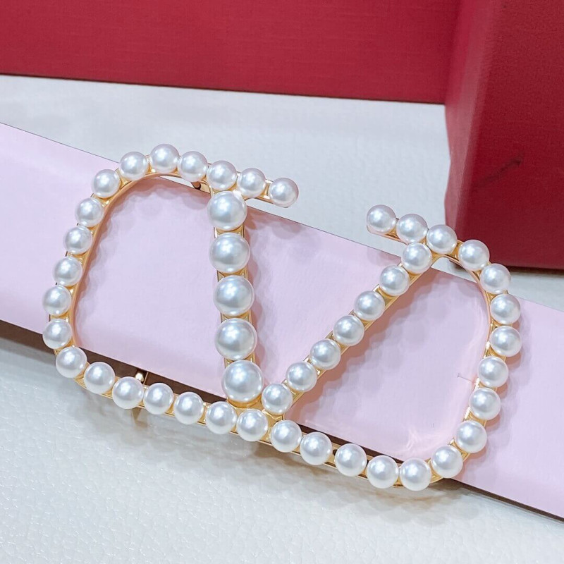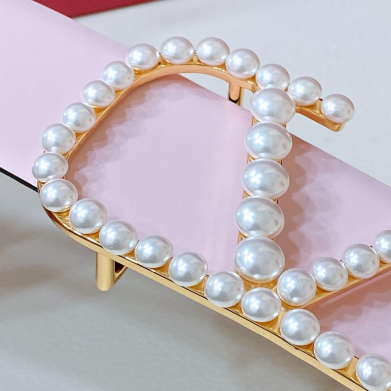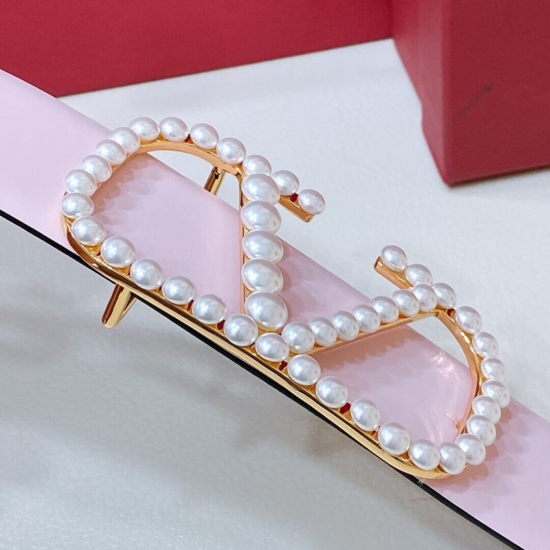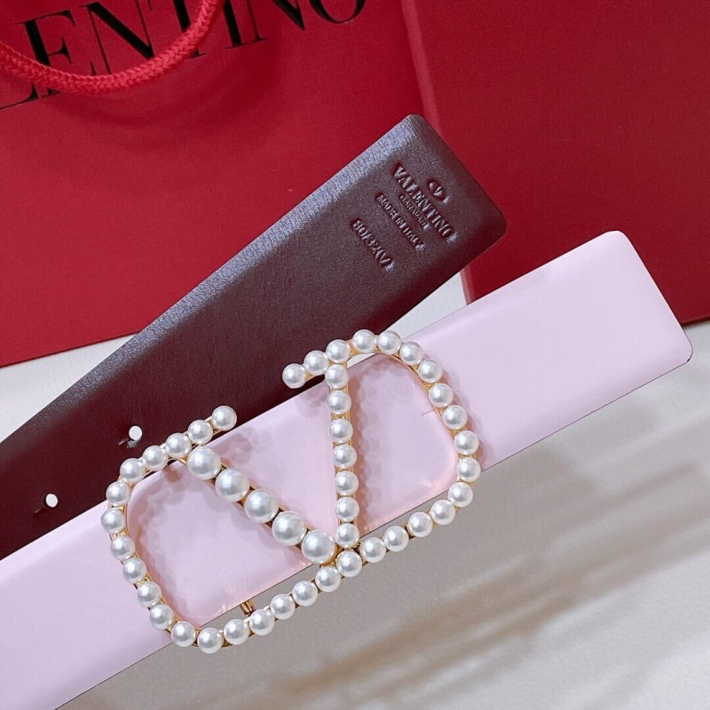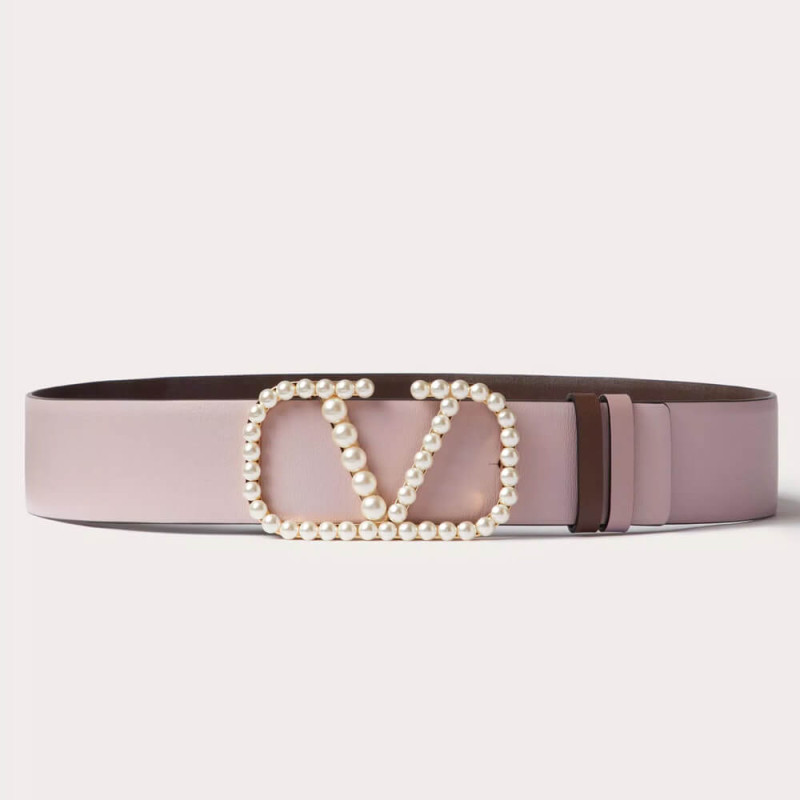 Valentino Vlogo Signature Reversible Belt In Shiny Calfskin With Pearls 40 mm