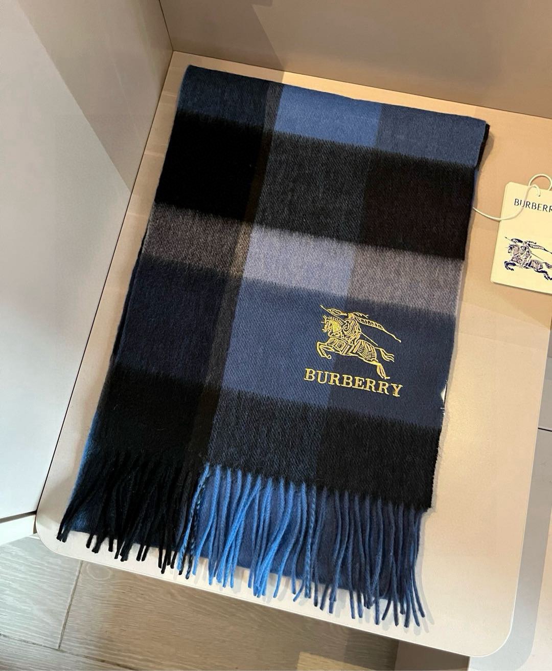 Burberry Cashmere Scarf Checkered Blue For Women 180cm