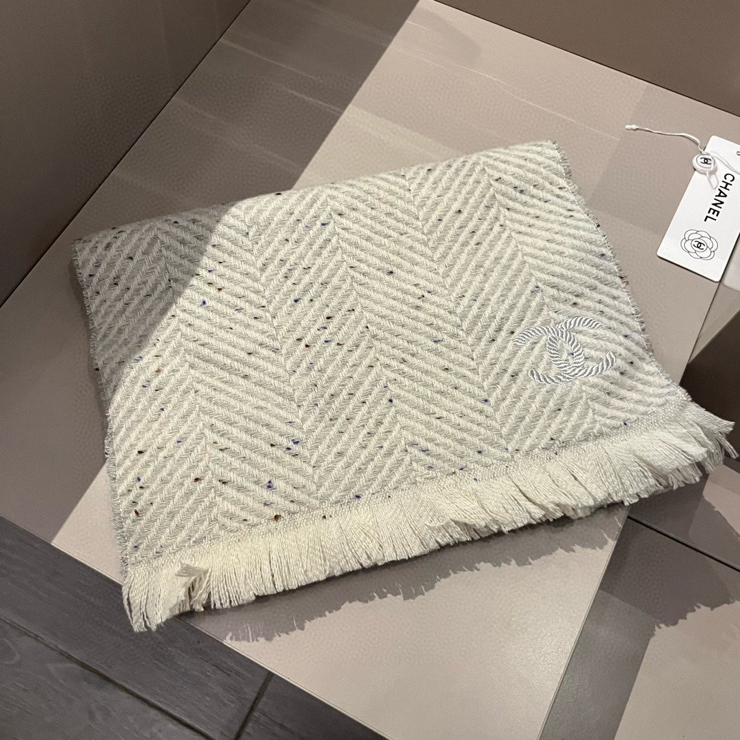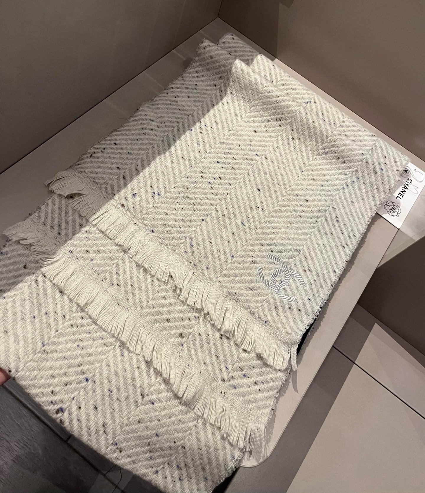 Chanel Cashmere Scarf Chevron White For Women 180cm