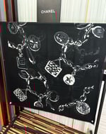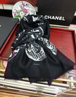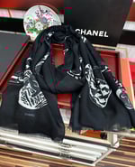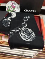 Chanel Silk Shawl Charm Chain Motif Black For Women 200cm