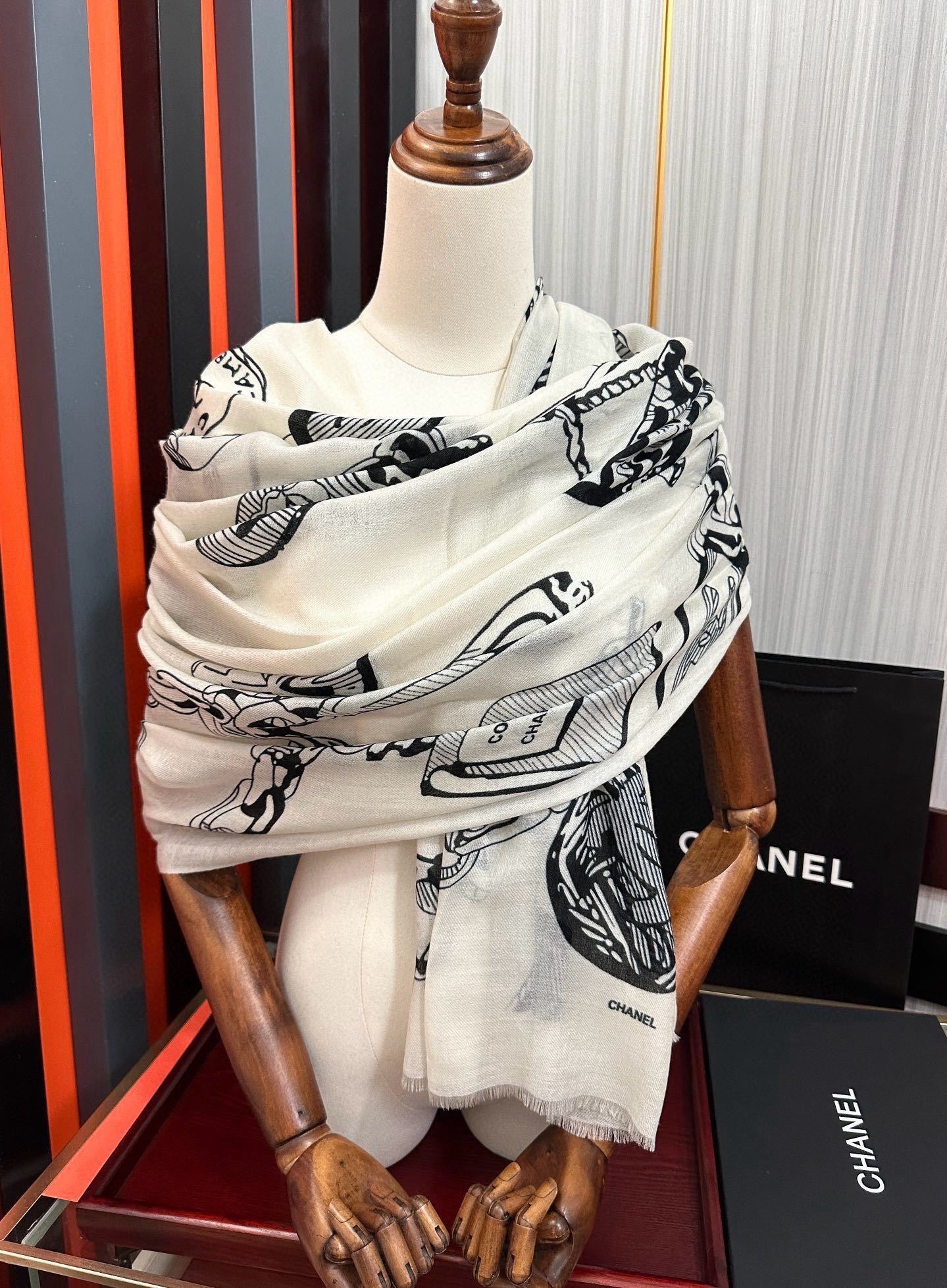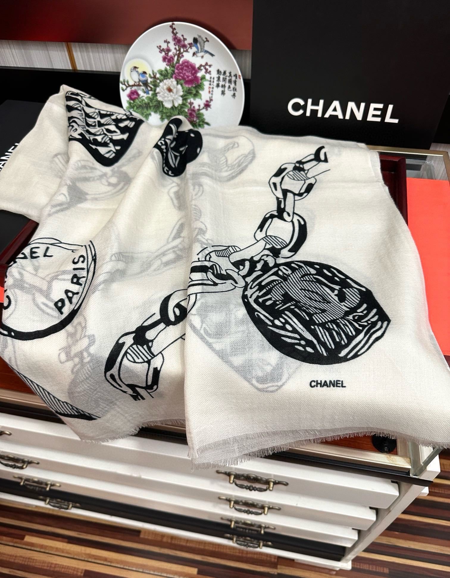 The Chanel shawl embodies the brand’s heritage of fine craftsmanship and Parisian elegance, making it the ideal accessory to elevate any outfit for any season.