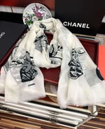 This Chanel shawl is a sophisticated and luxurious accessory, featuring an elegant design that incorporates the CC logo motif that subtly intertwines the brand’s symbol.