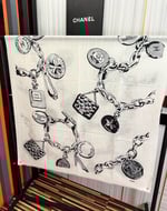 Chanel Silk Shawl Charm Chain Motif White For Women 200cm