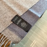 The tasseled edges in solid colors add warmth and style. Displayed on the shelf with a branded tag, this scarf combines timeless elegance with a modern touch, perfect for elevating winter outfits.
