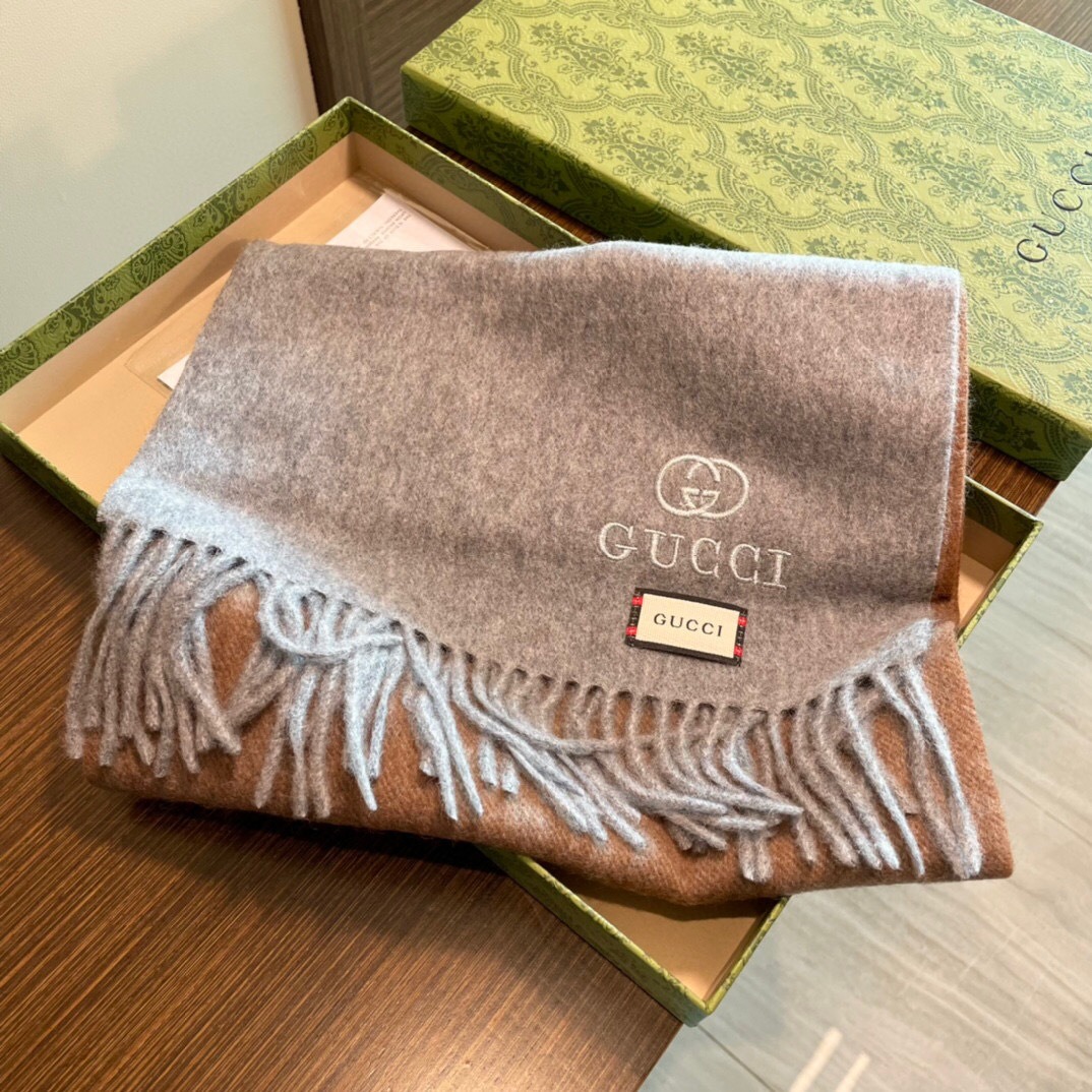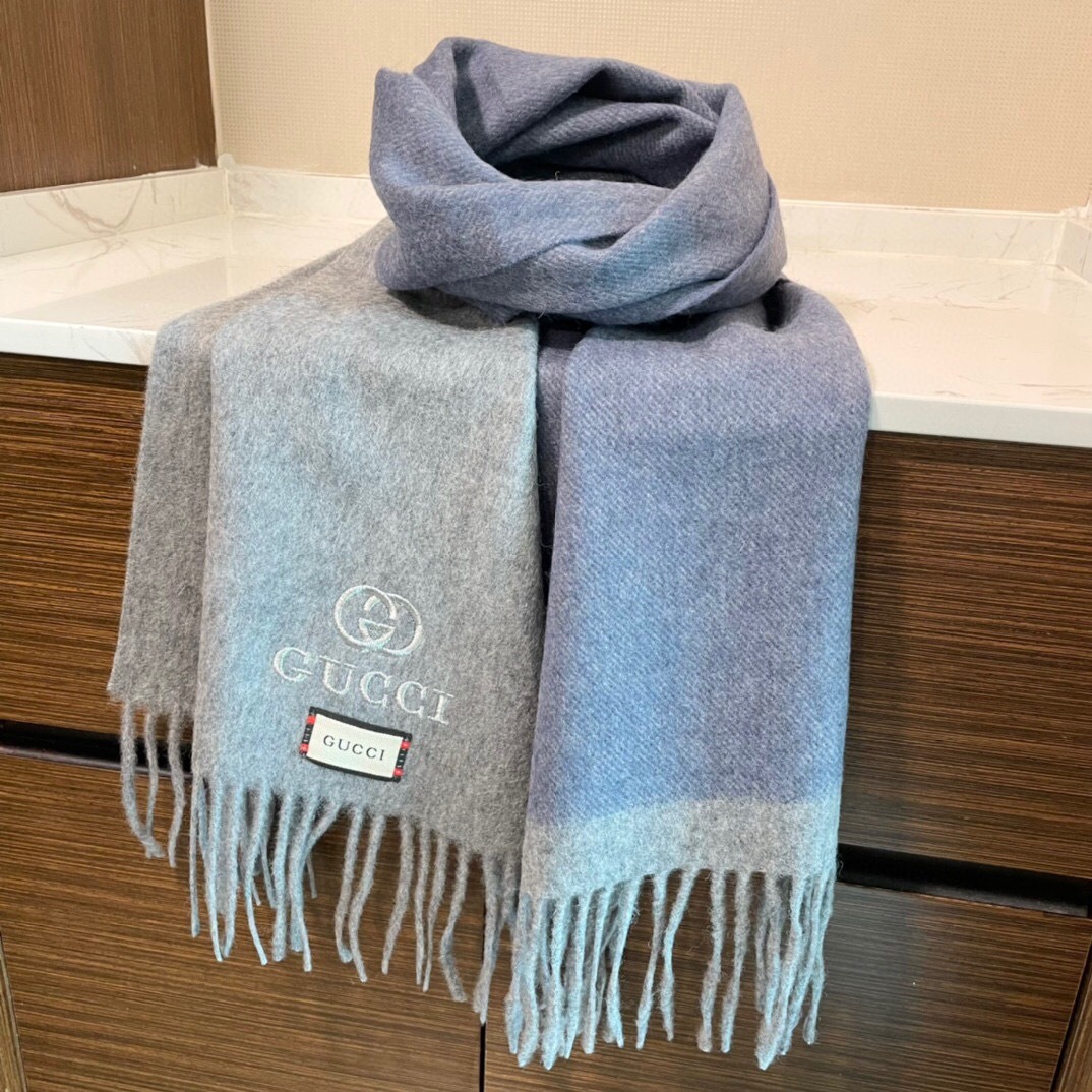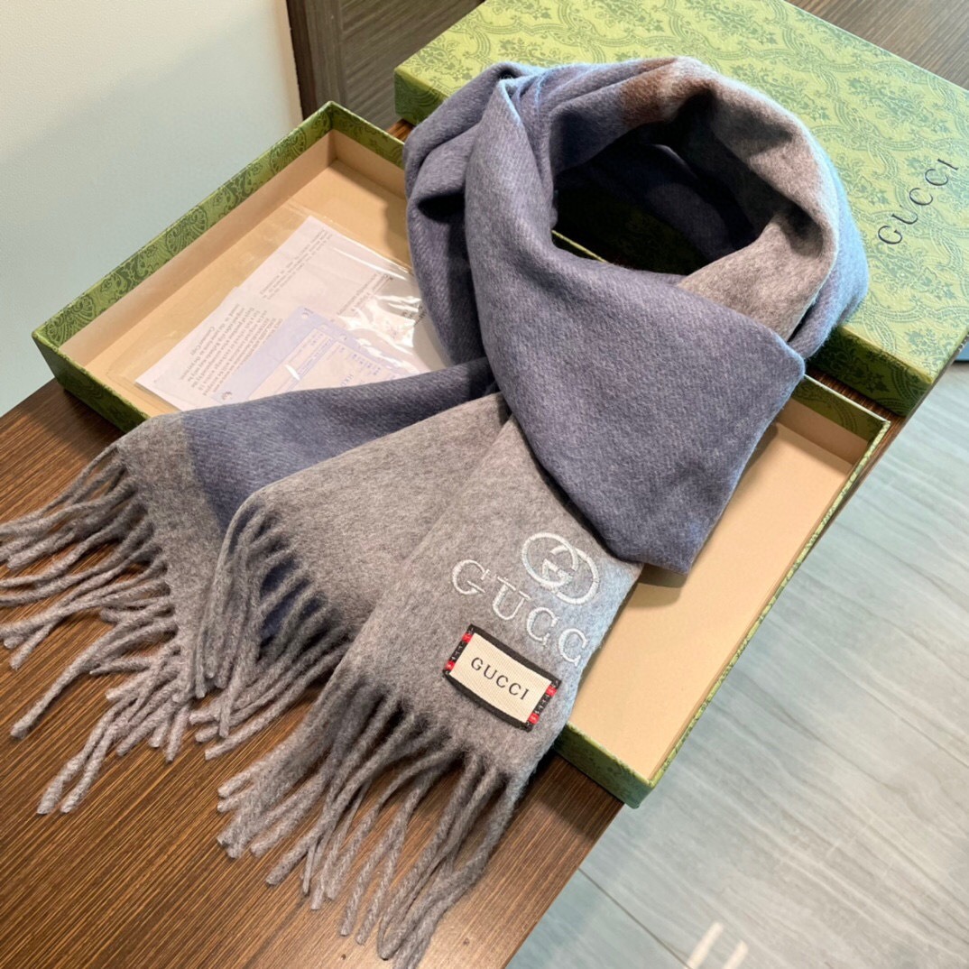 Gucci Cashmere Scarf Colorblock Gray Blue For Women 190cm