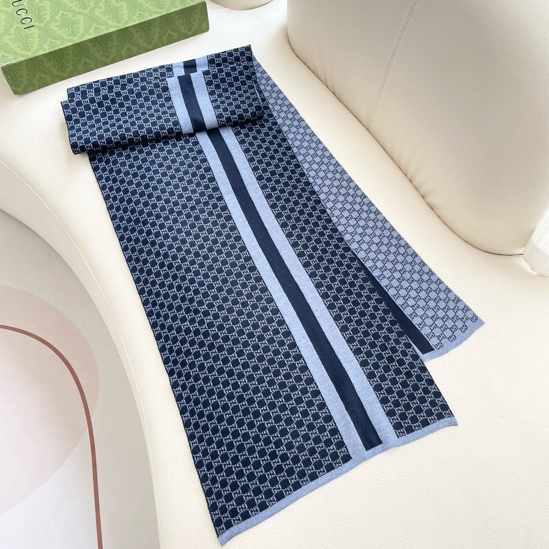 Gucci Cashmere Scarf Pattern Blue For Women 180cm
