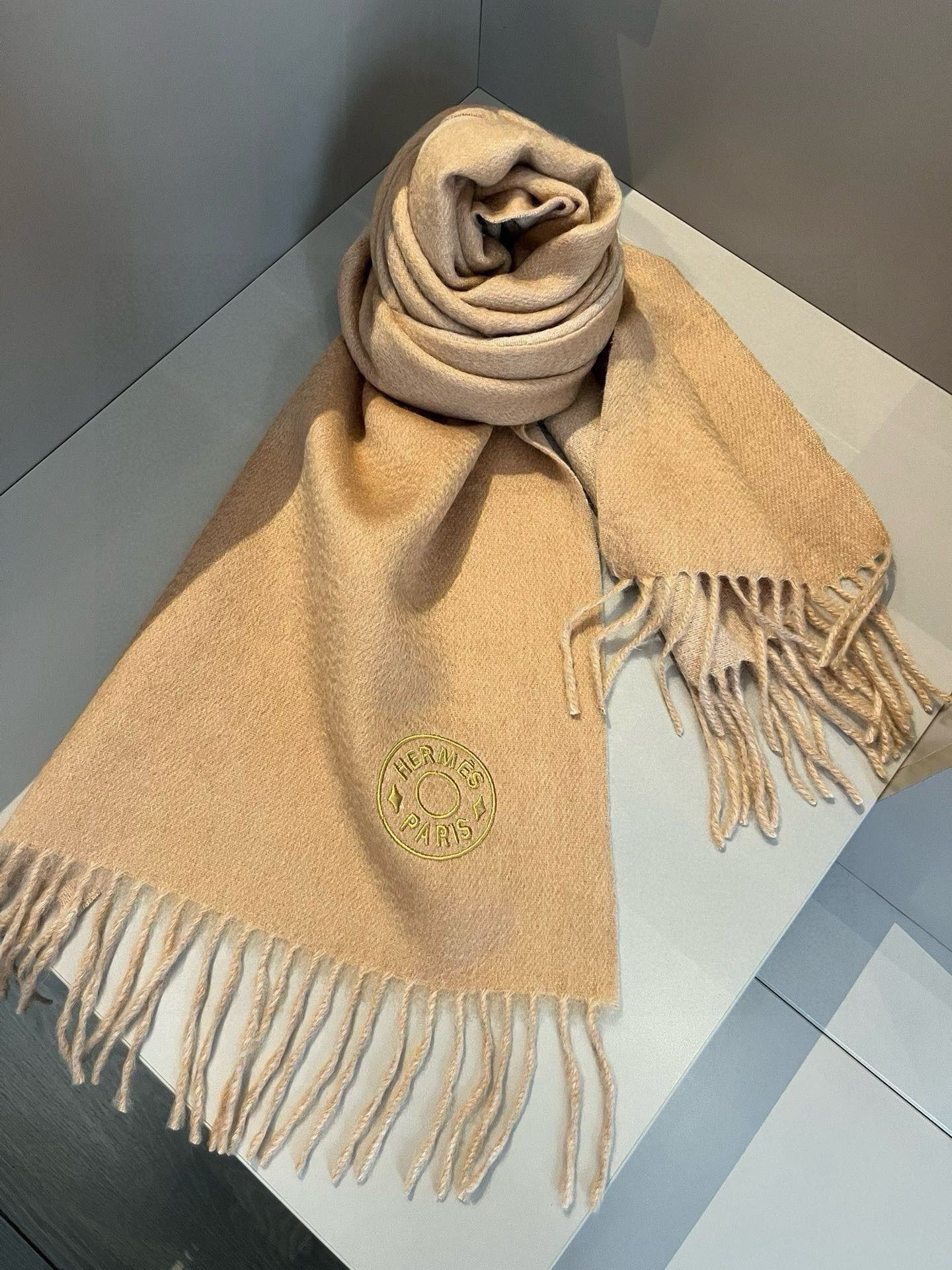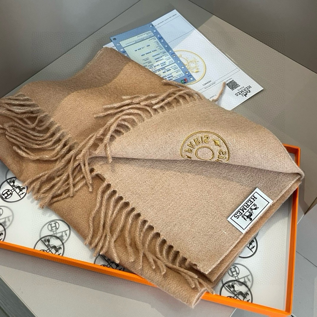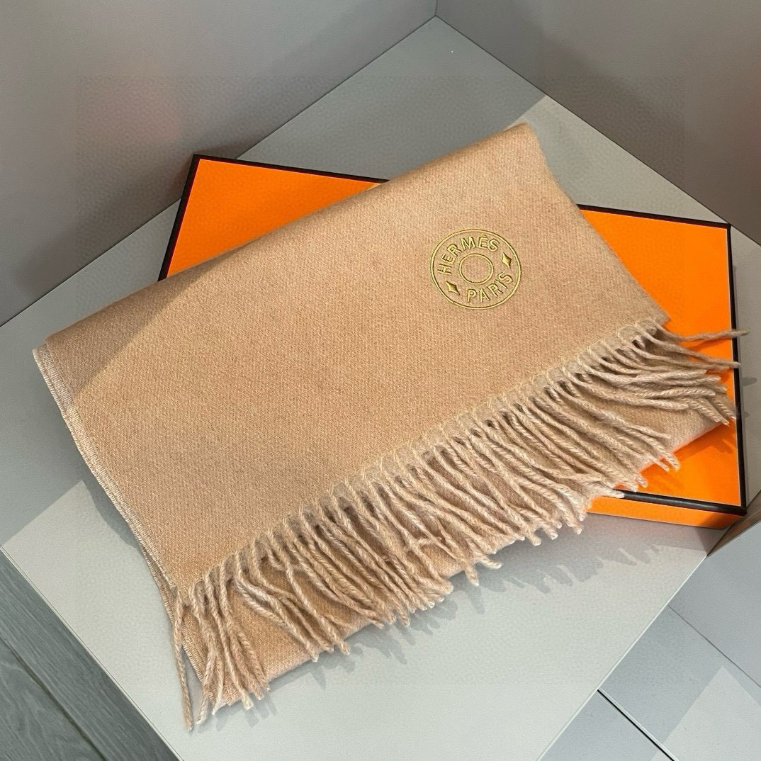 Home Shop Accessories Scarves Hermes Cashmere Blanket Scarf Khaki For Women 180cm