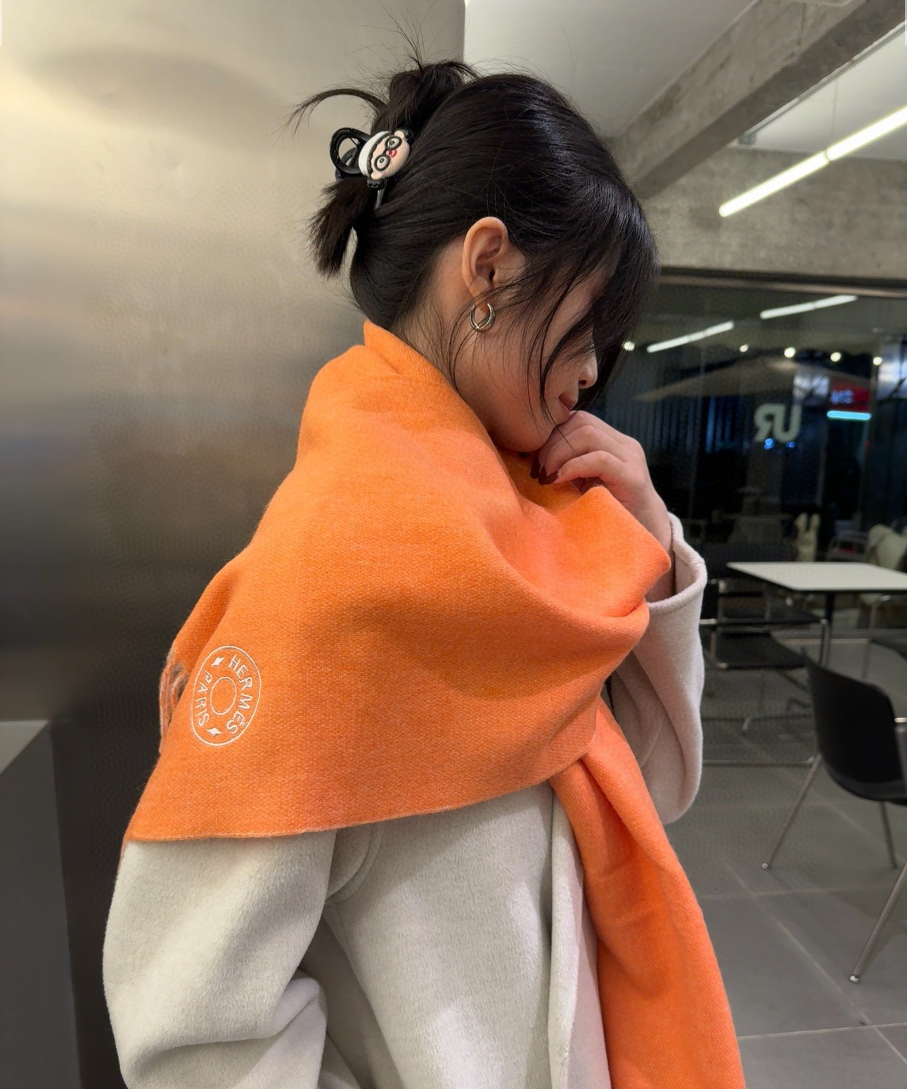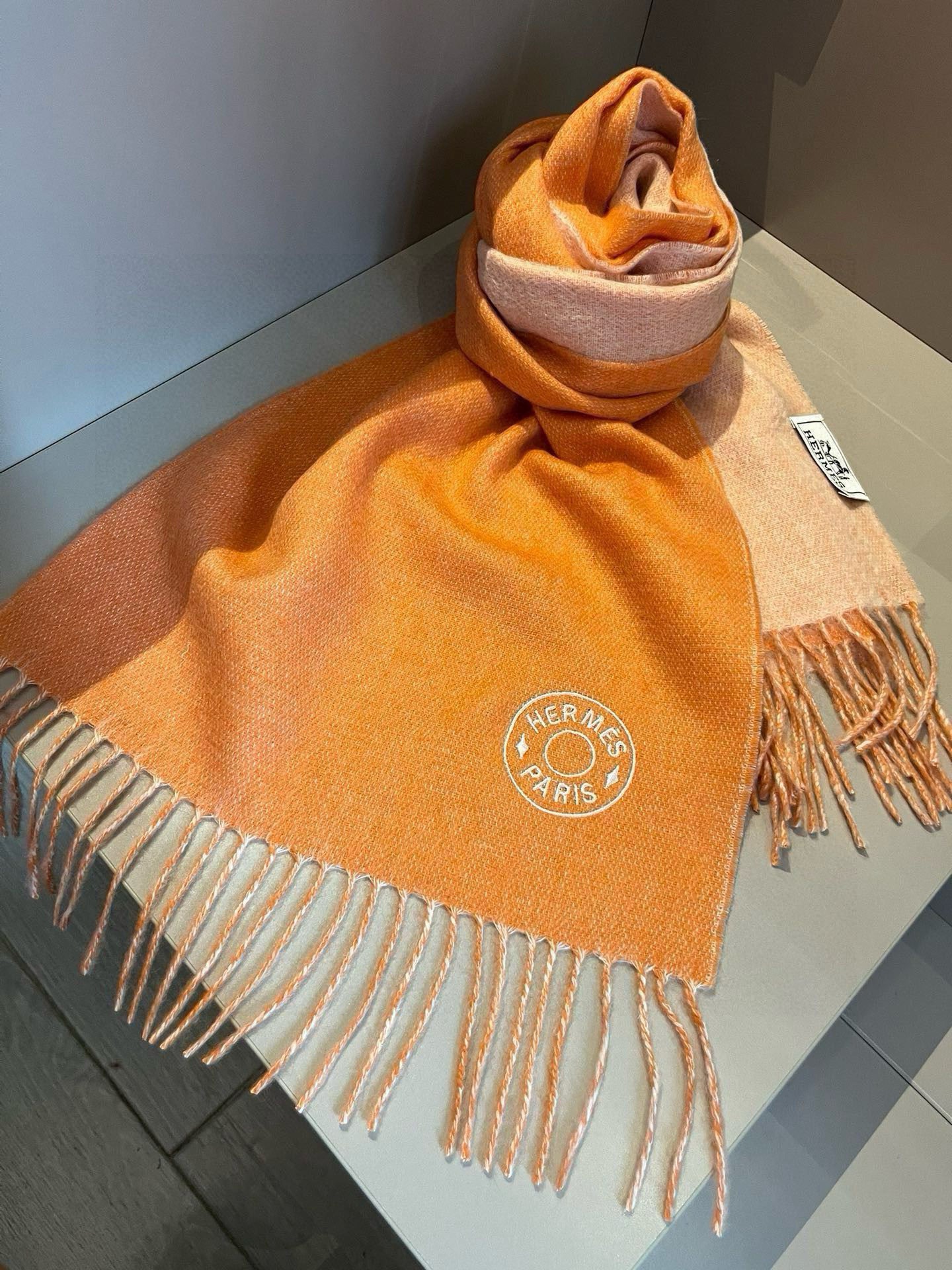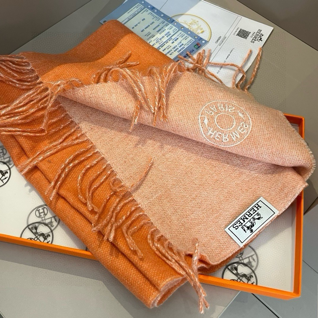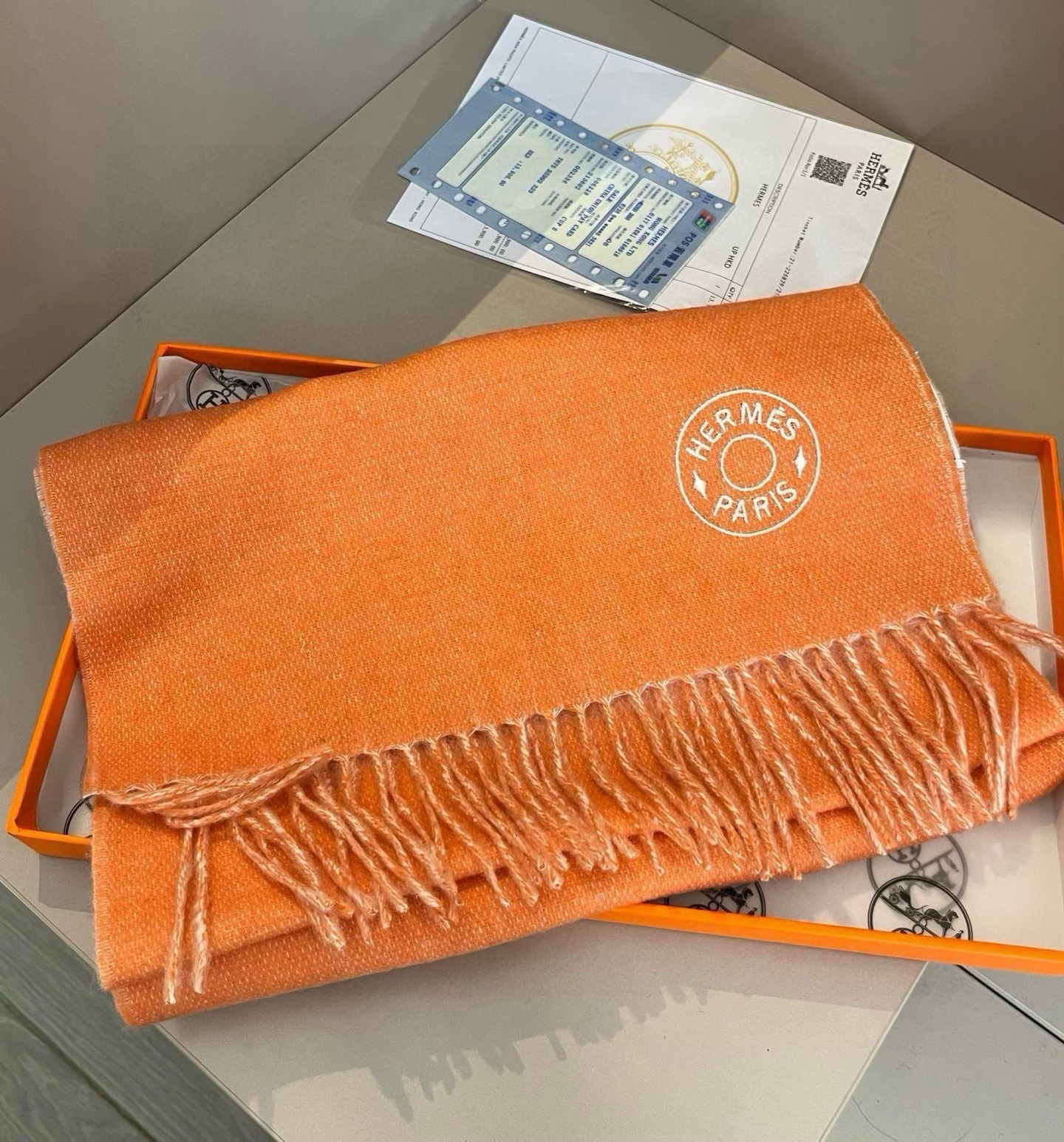 Hermes Cashmere Blanket Scarf Orange For Women 180cm