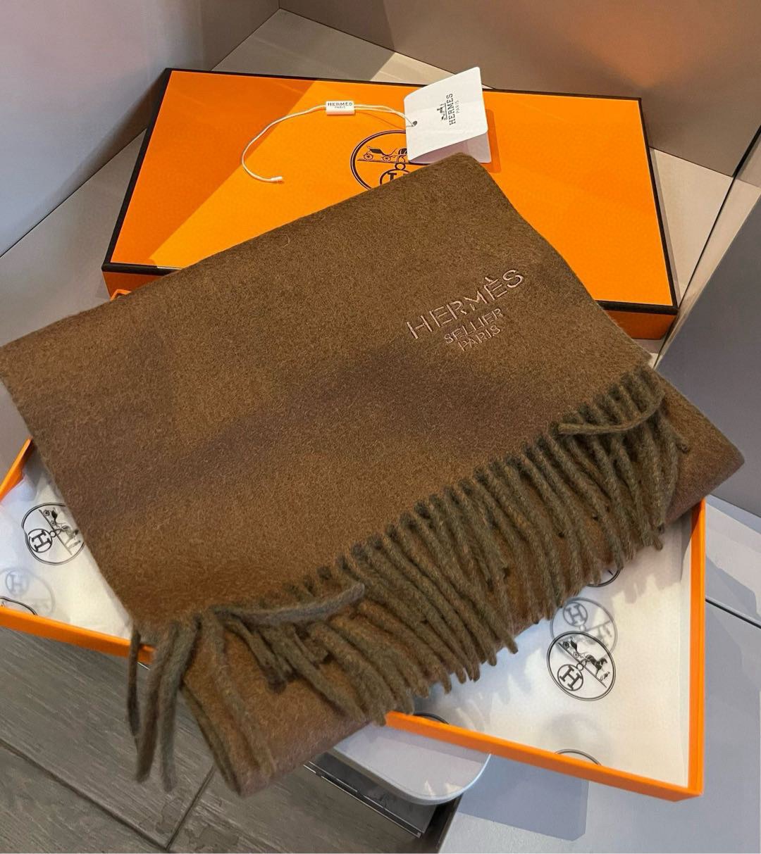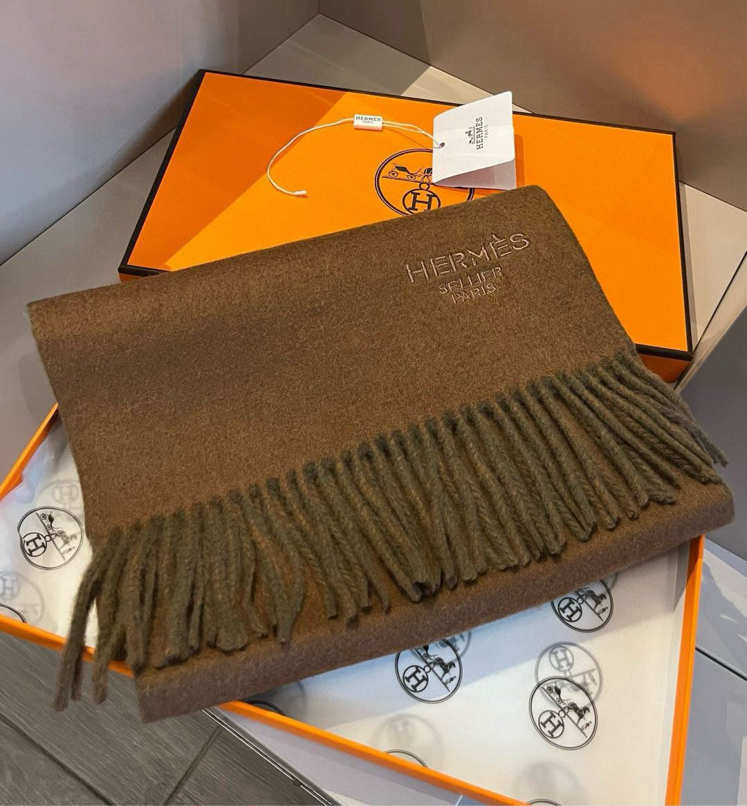 Hermes Cashmere Scarf Colorblock Brown For Women 180cm