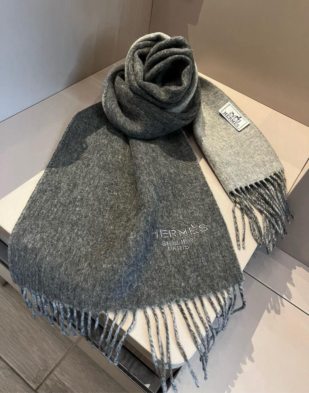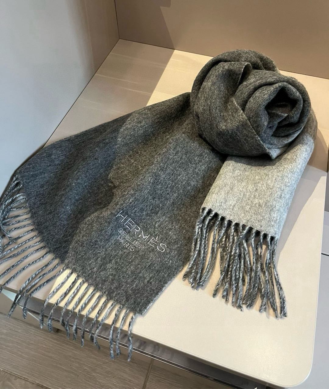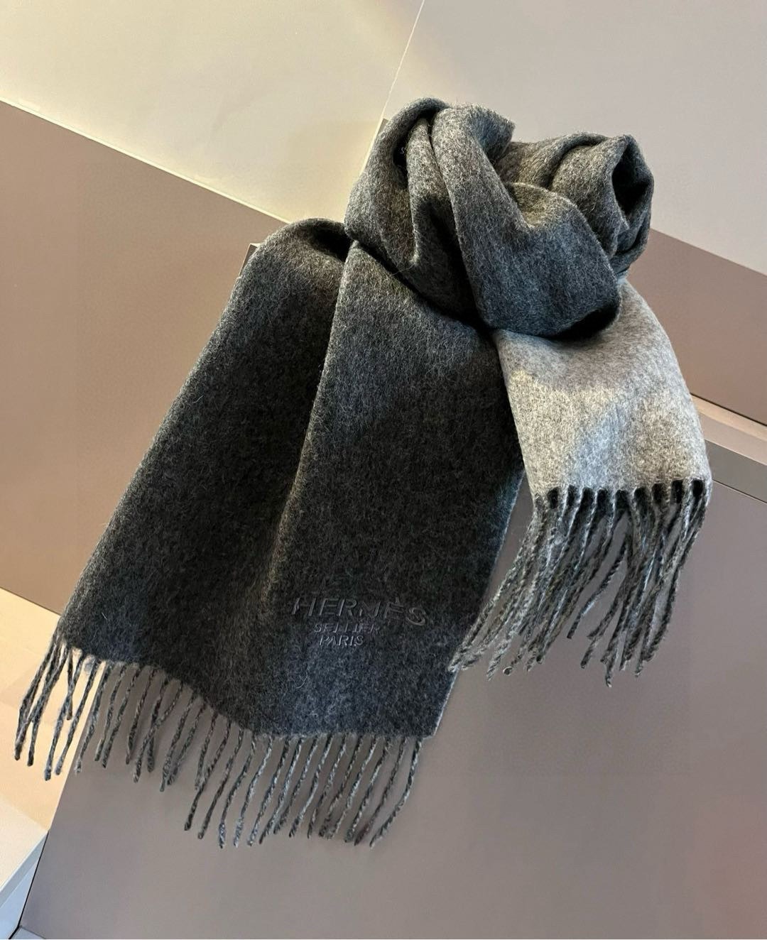 Hermes Cashmere Scarf Colorblock Dark Gray Light Gray For Women 180cm