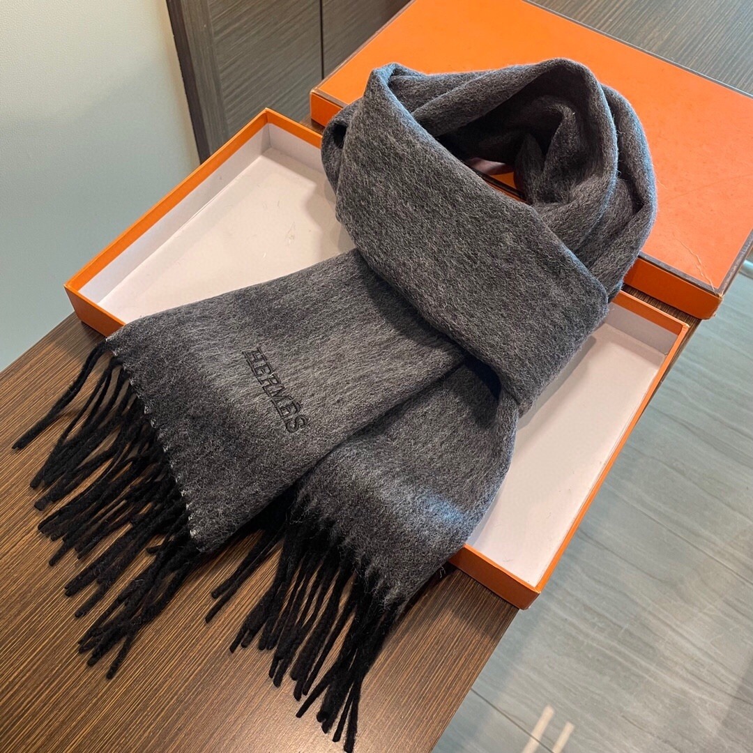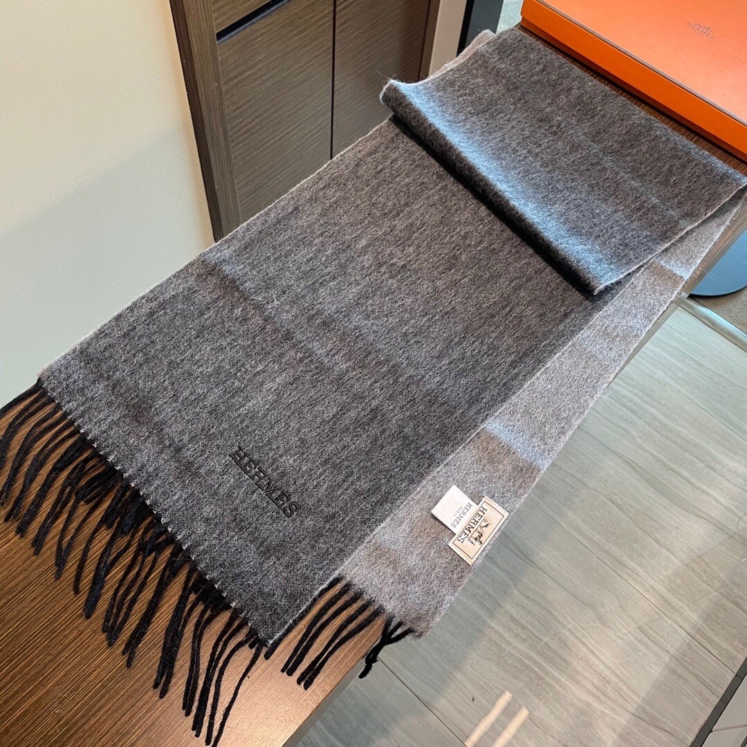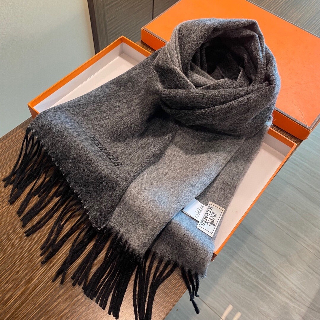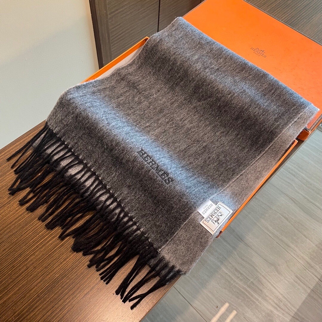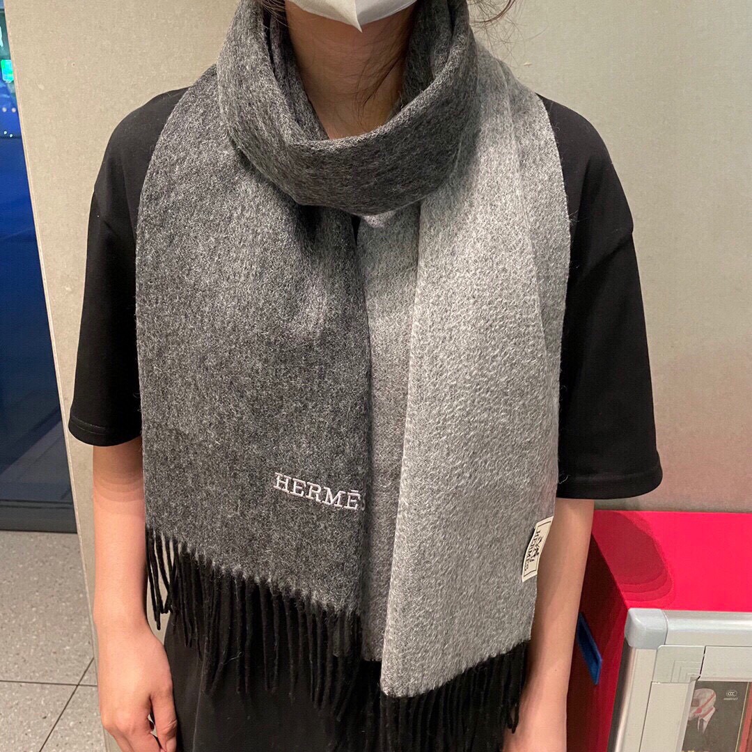 Hermes Cashmere Scarf Colorblock Gray For Women 180cm