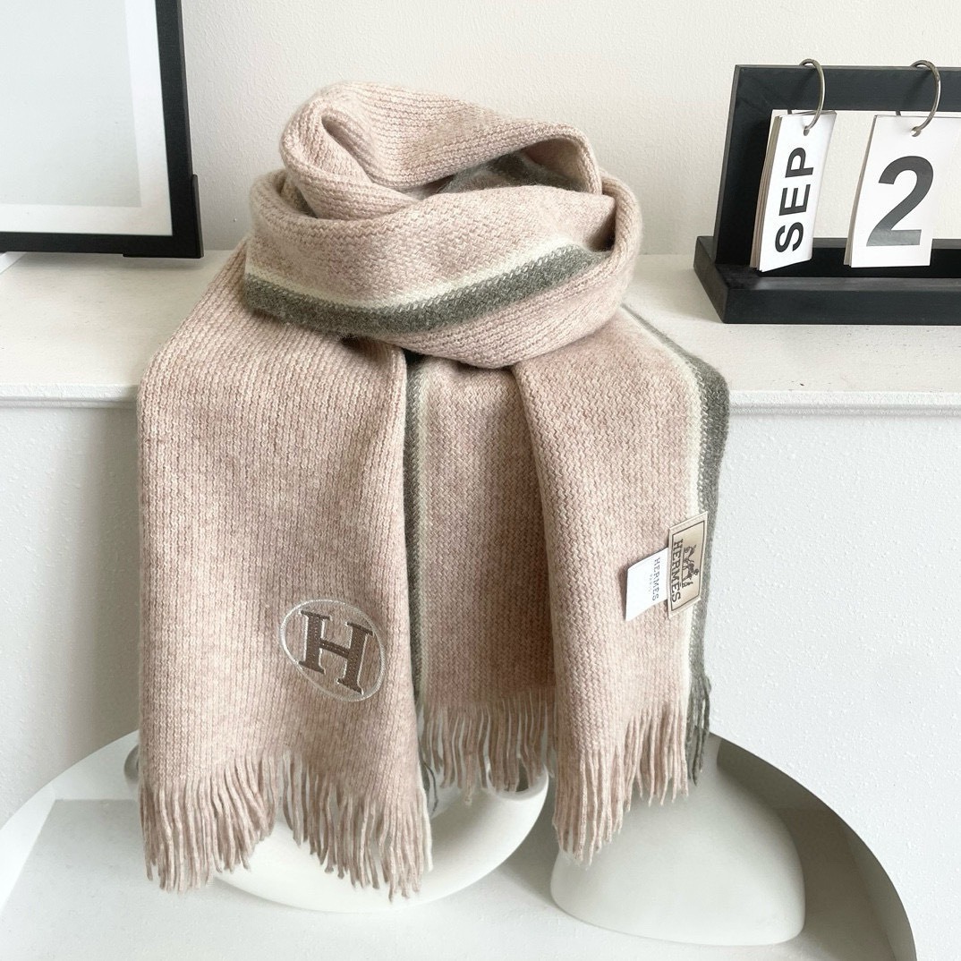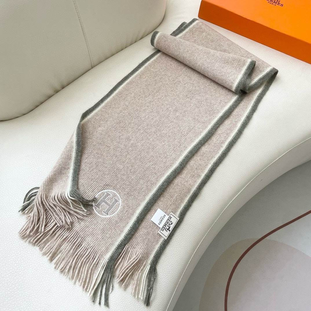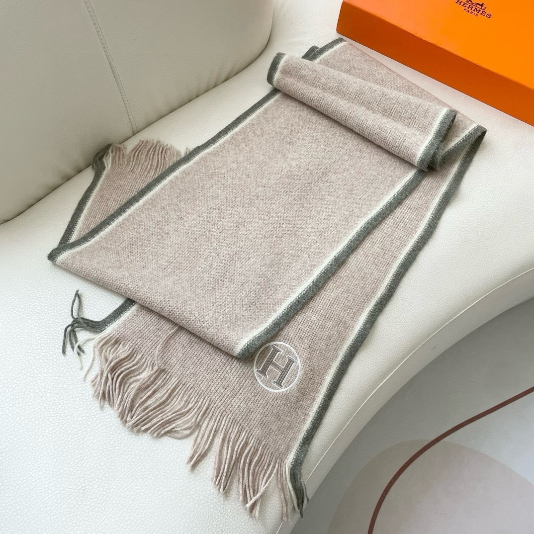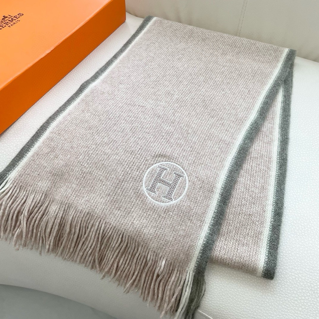 Hermes Cashmere Scarf H-Motif Beige For Women 180cm