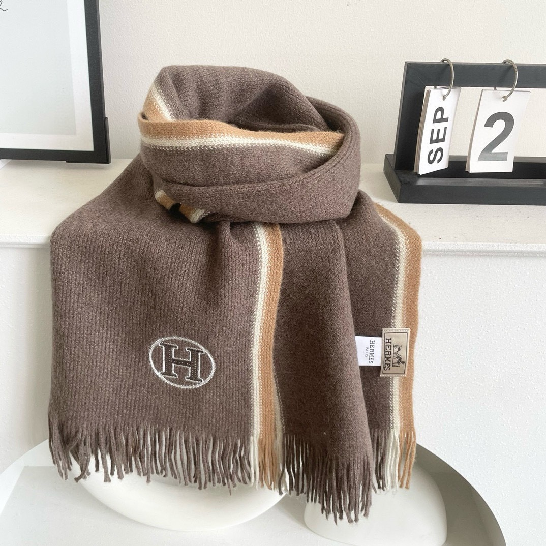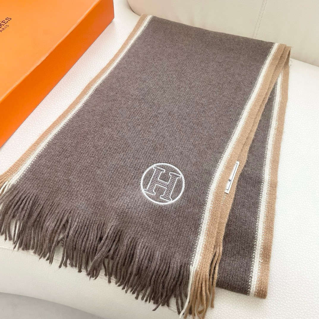 Hermes Cashmere Scarf H-Motif Brown For Women 180cm