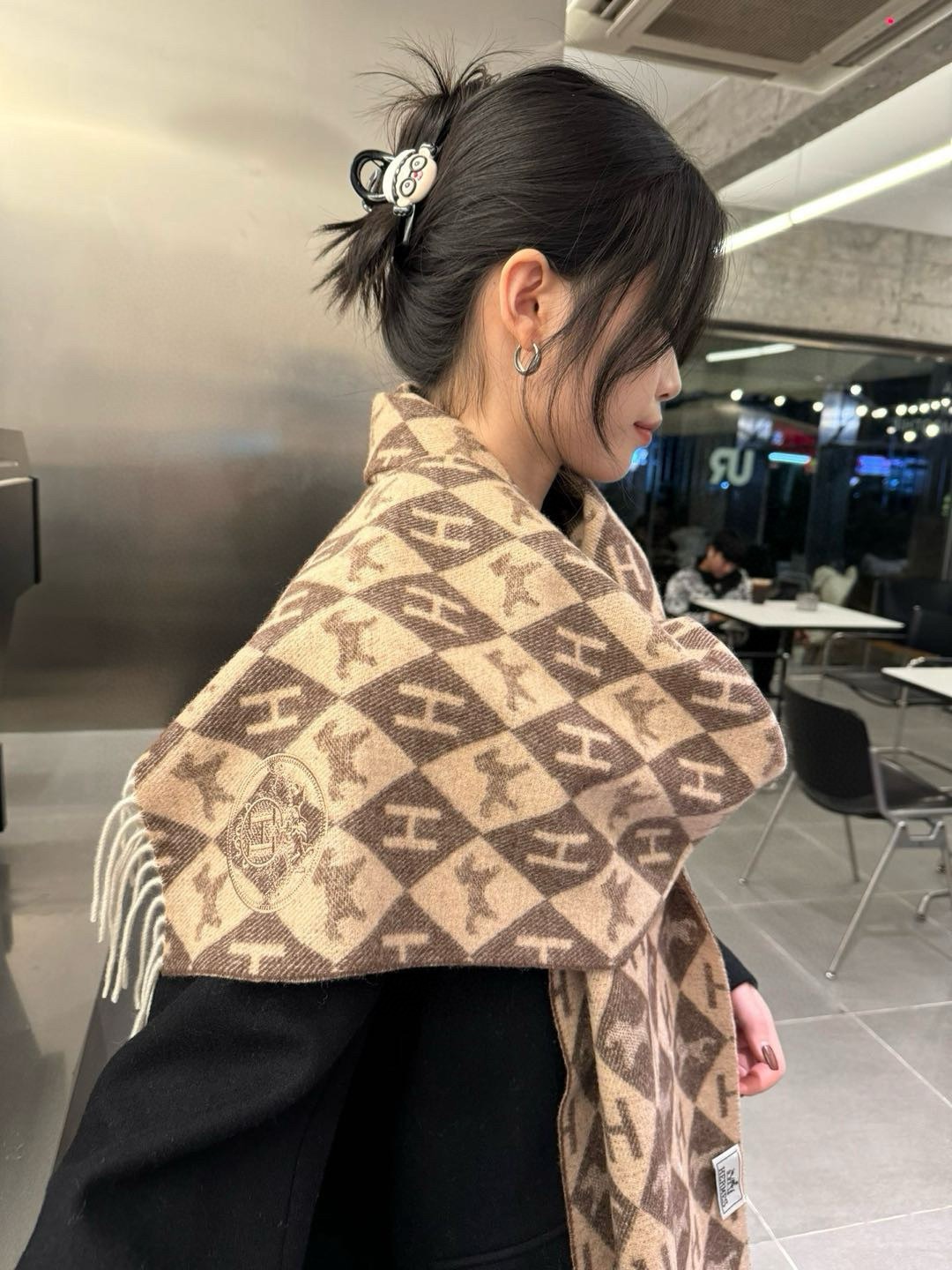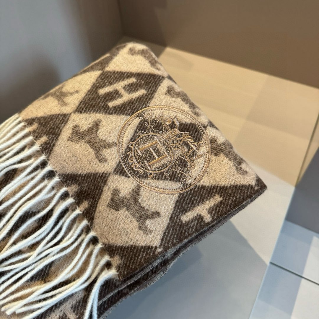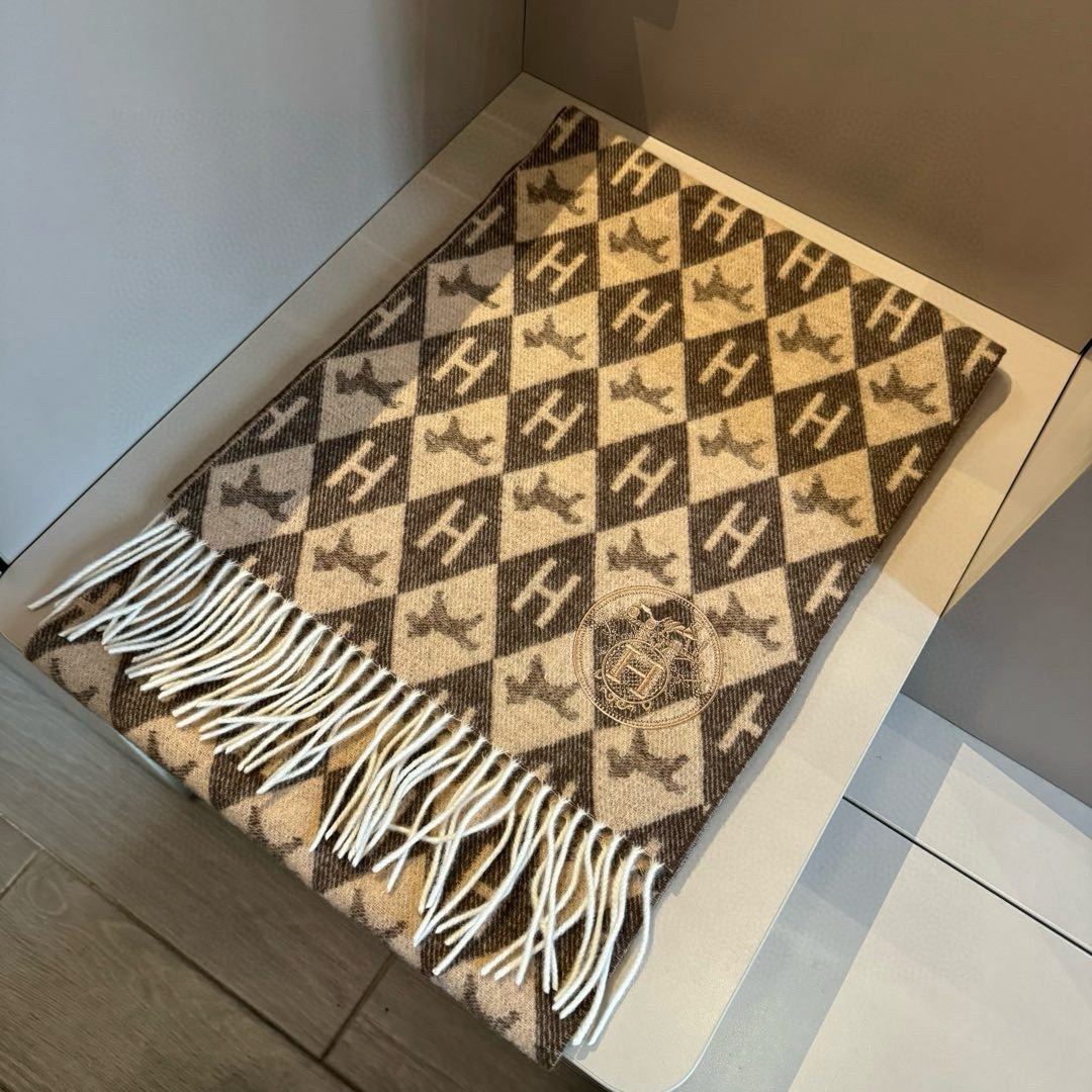 Hermes Diamond H Cashmere Scarf Brown For Women 180cm