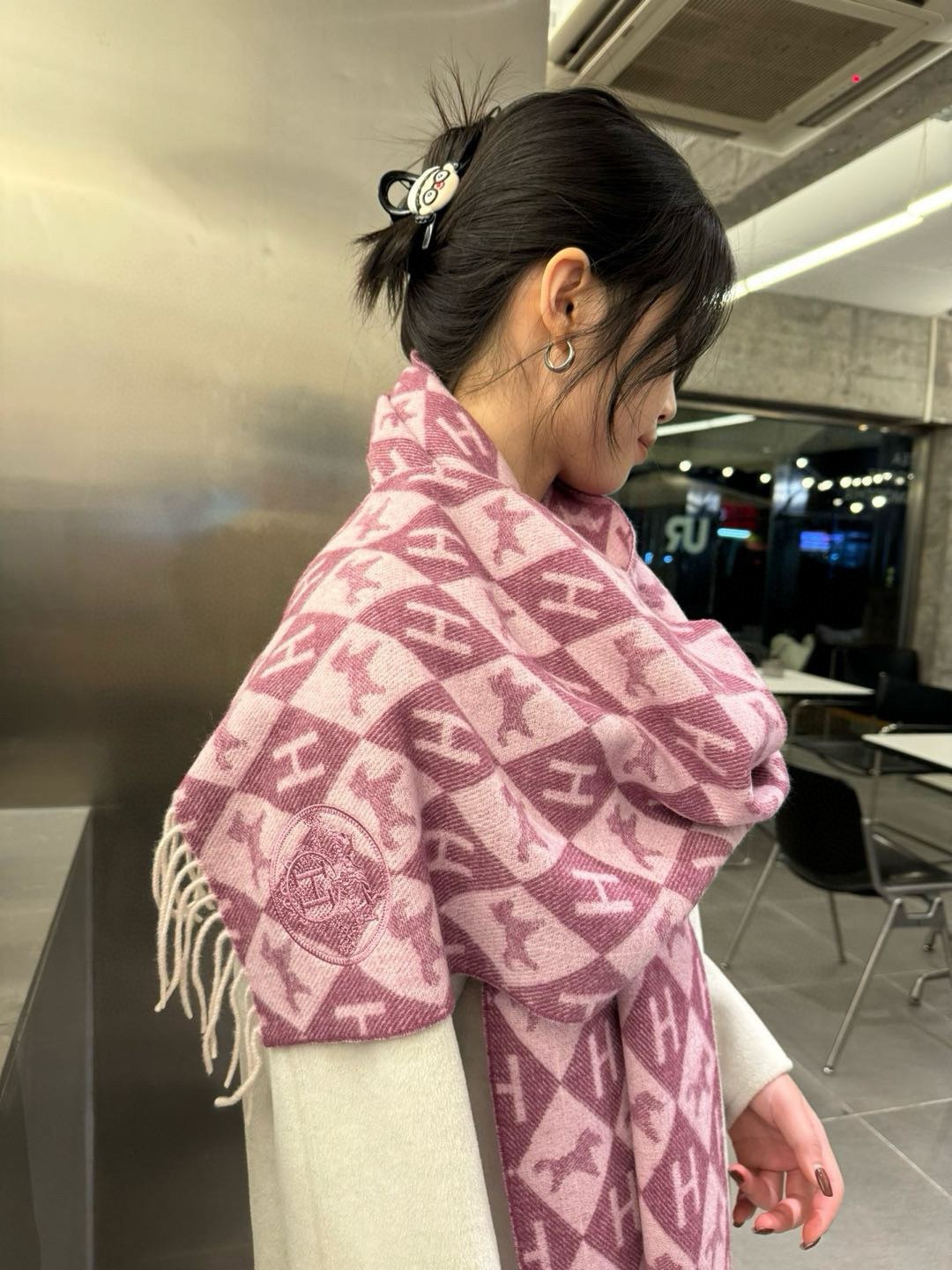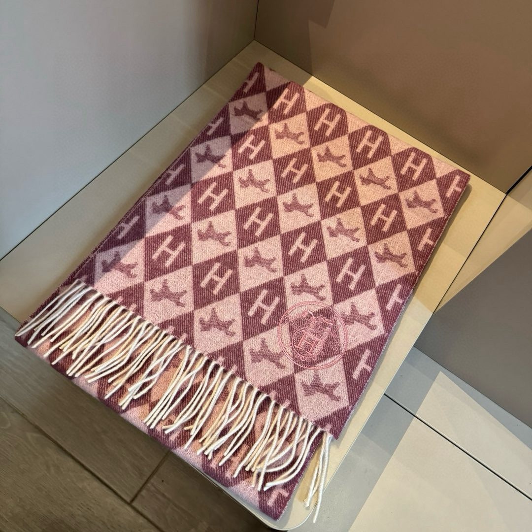 Hermes Diamond H Cashmere Scarf Burgundy For Women 180cm