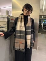 Loewe Cashmere Scarf Check Black Beige For Women 180cm