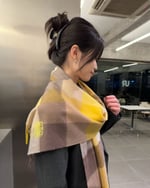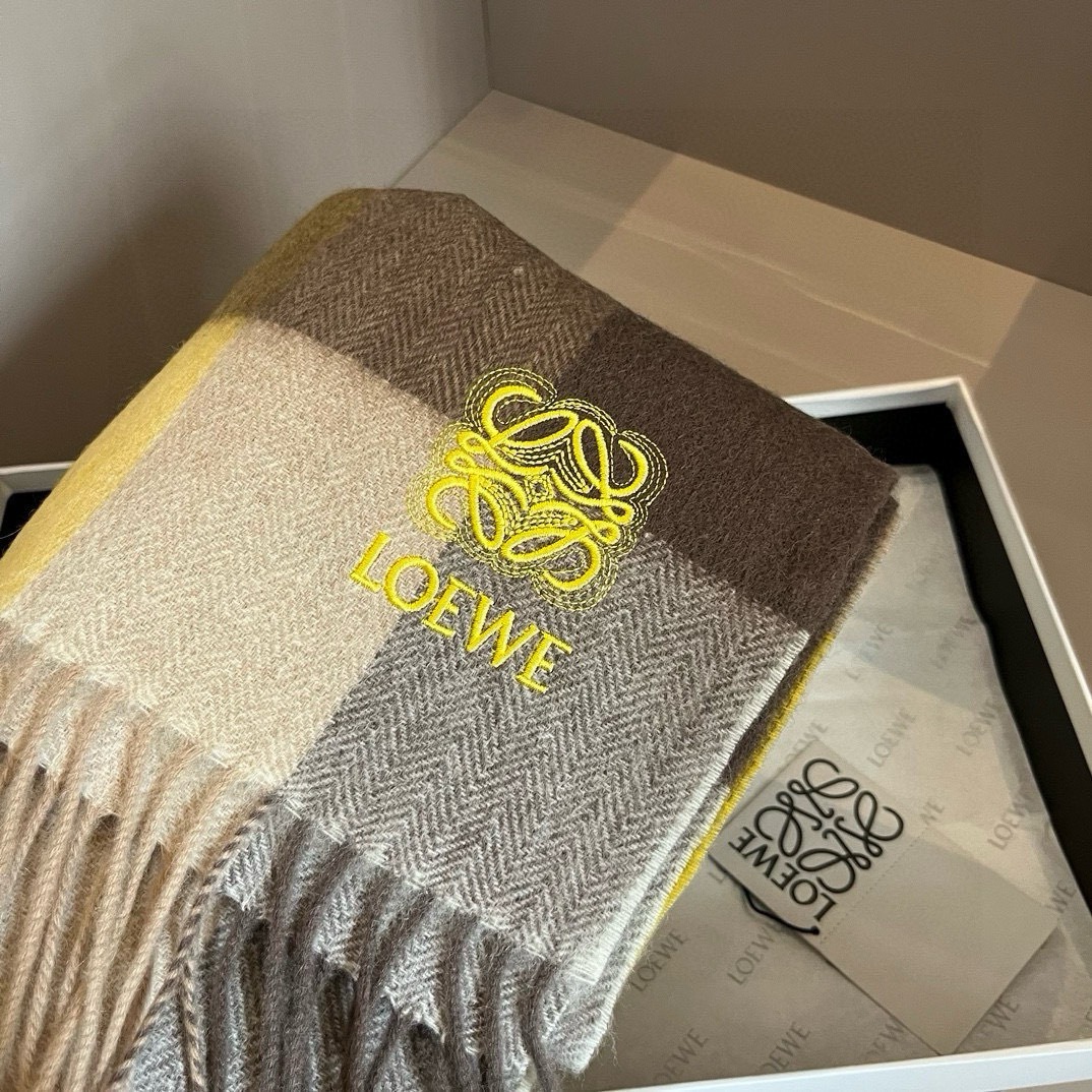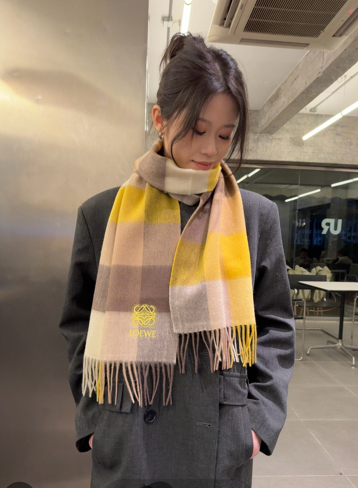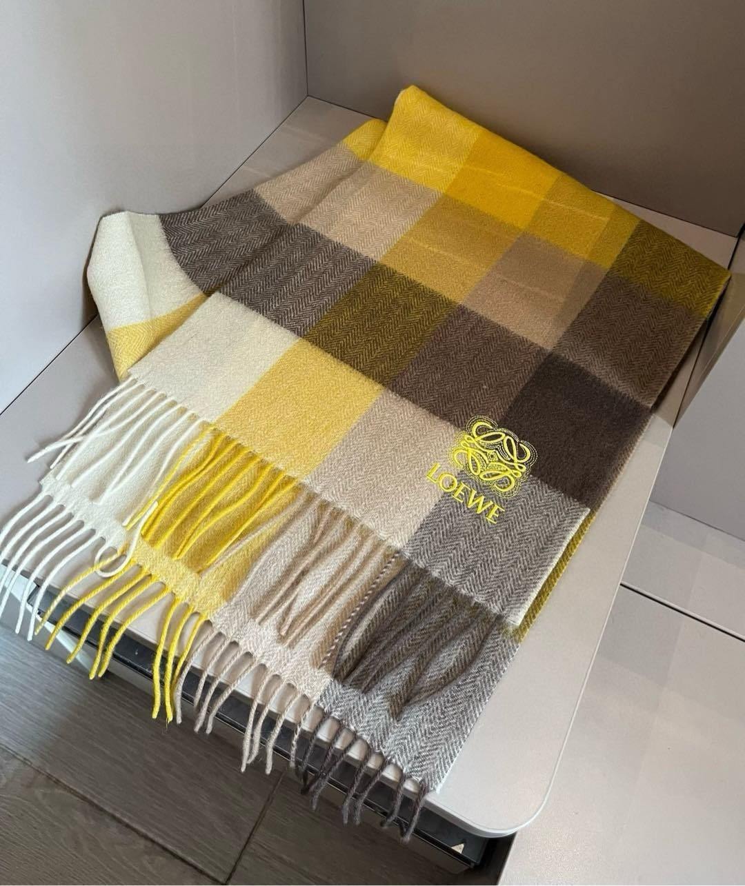 Loewe Cashmere Scarf Check Yellow For Women 180cm