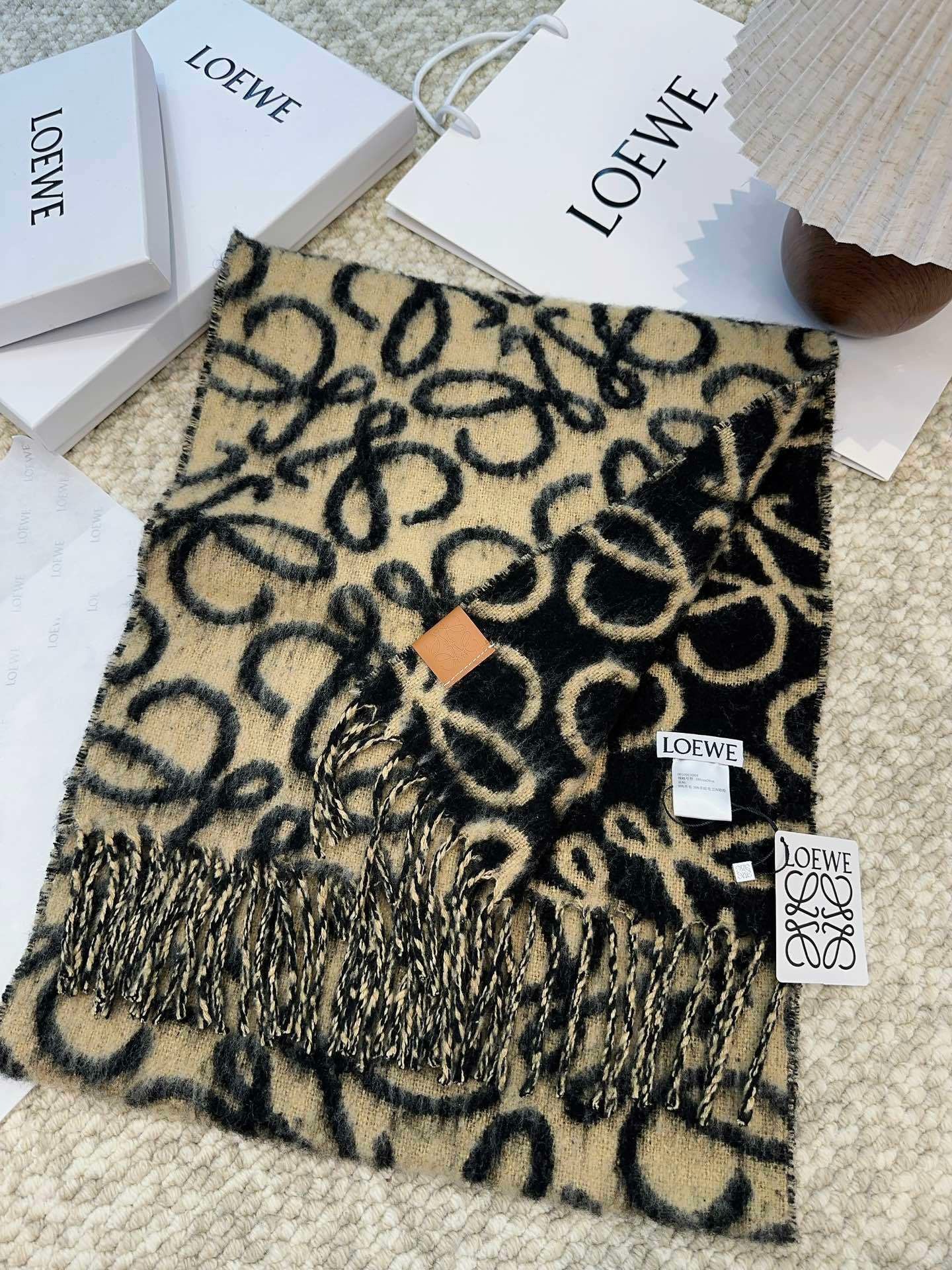 Loewe scarves are iconic luxury accessories from the Spanish fashion house Loewe, renowned for its exquisite leather craftsmanship and now known for its modern fashion products.