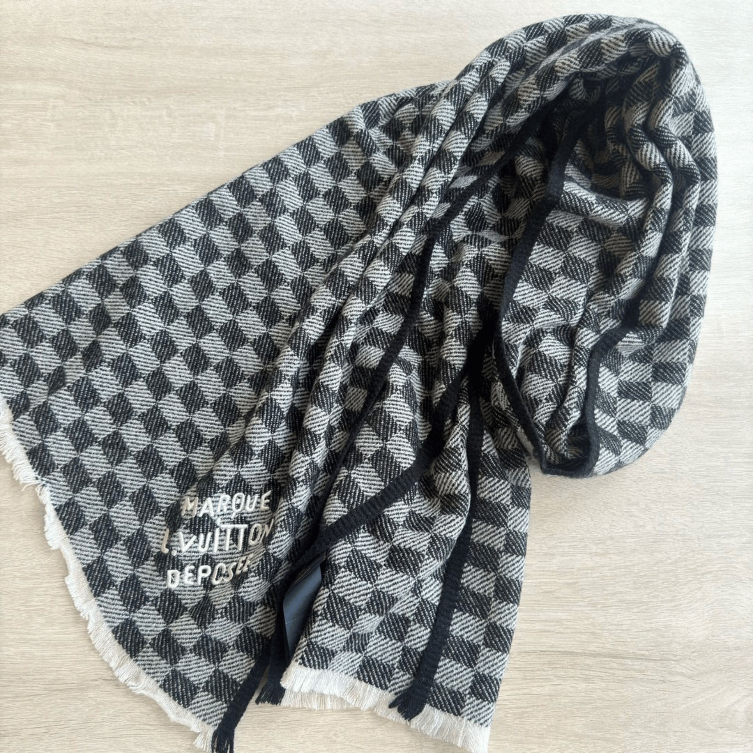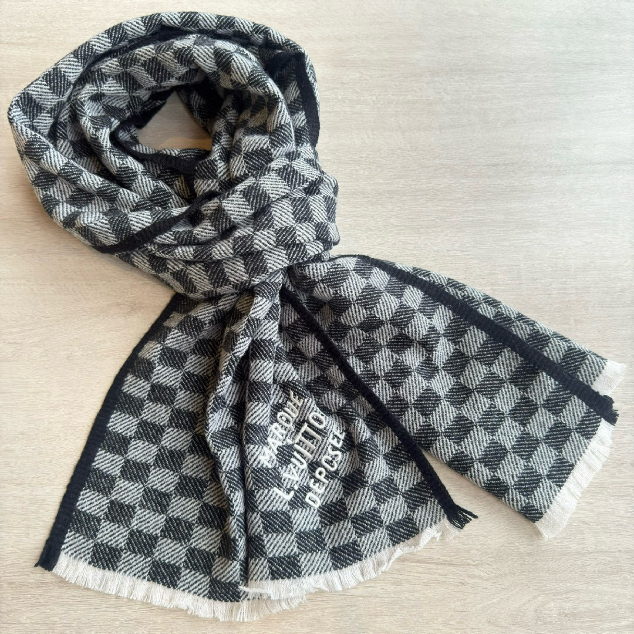 Louis Vuitton Damier Checkered Scarf Black For Women 190cm