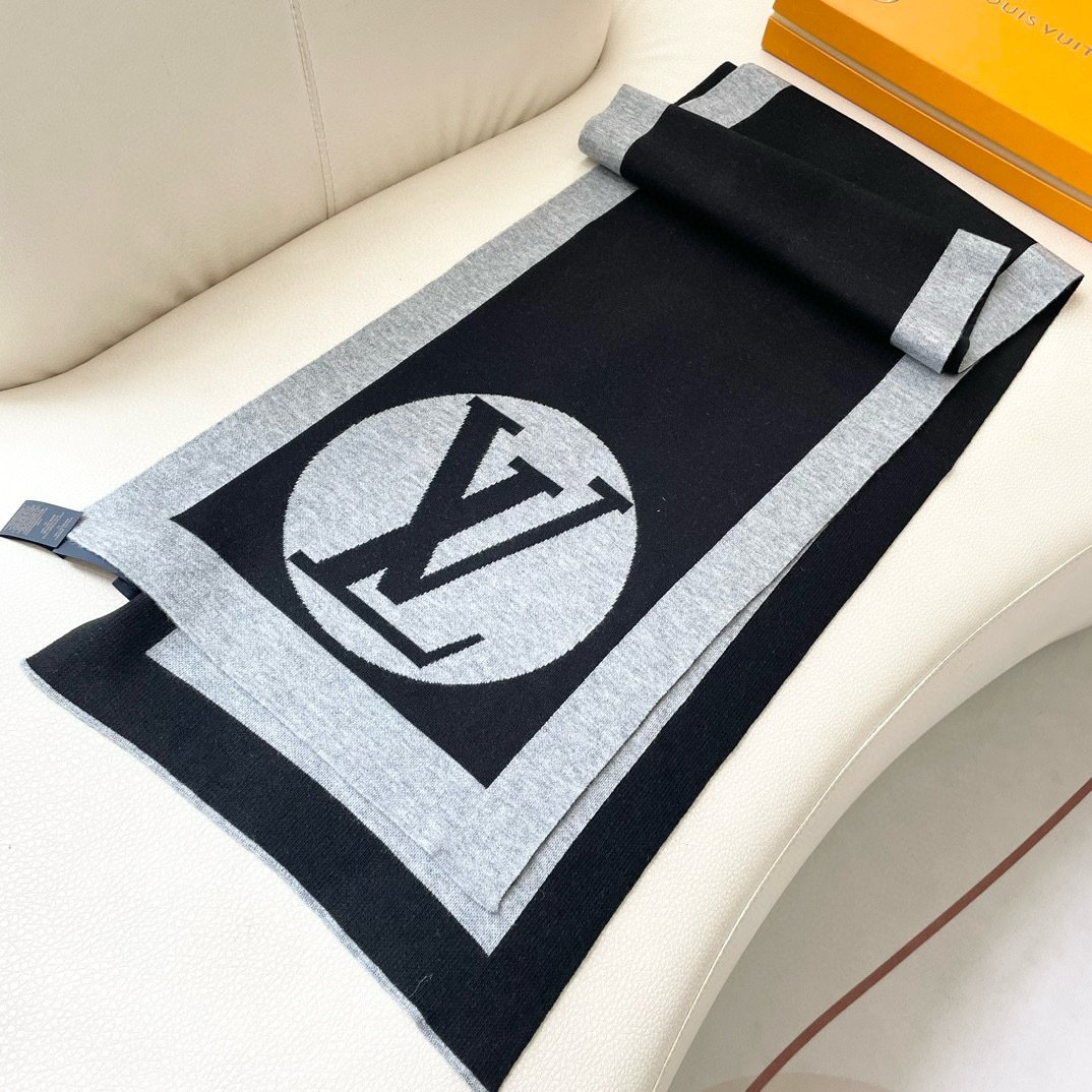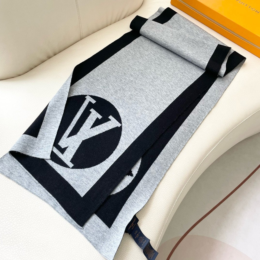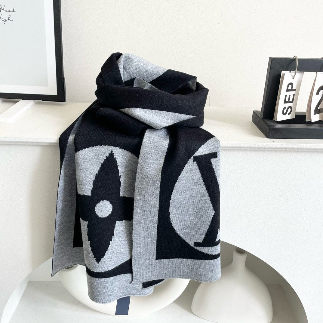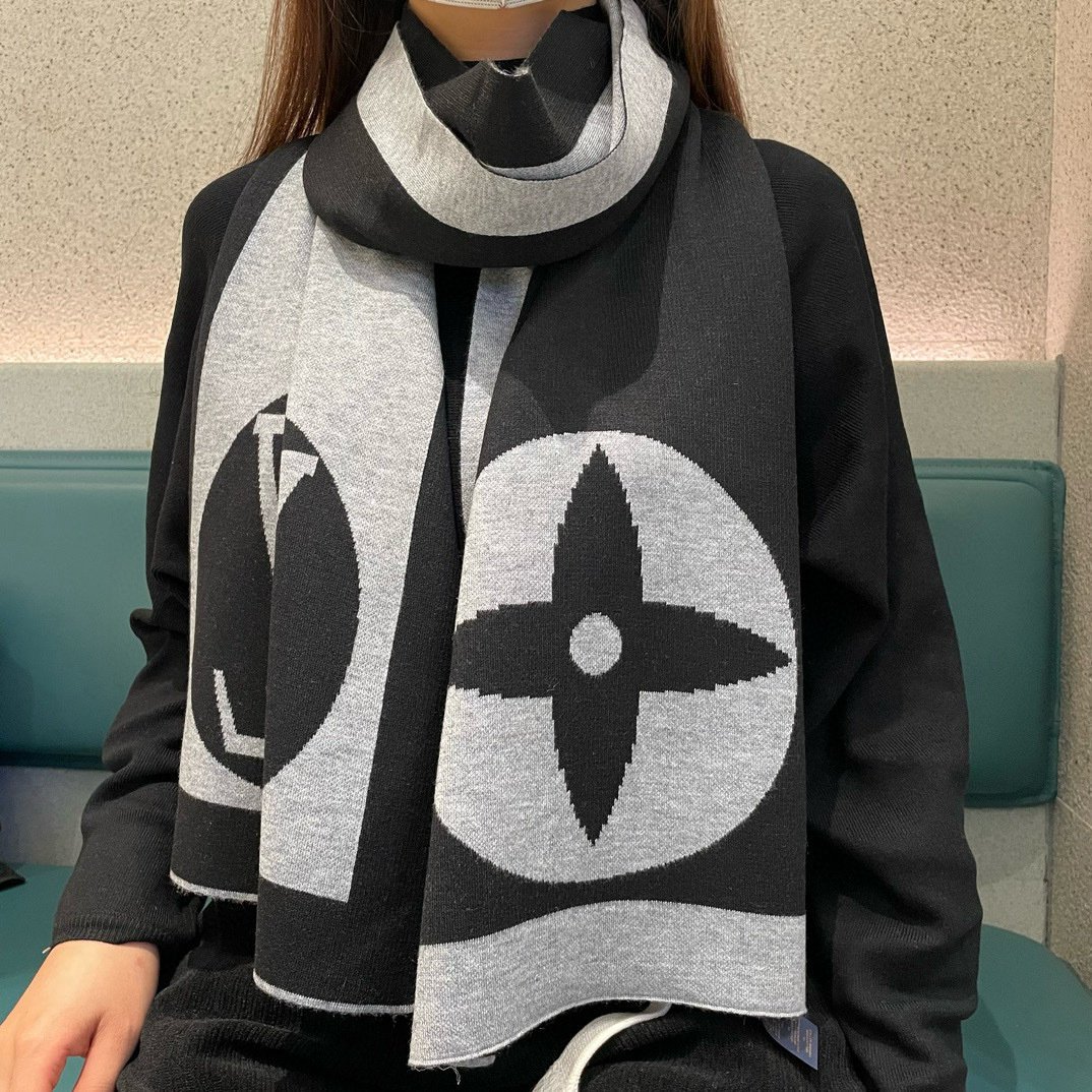 Louis Vuitton Monogram Cashmere Jacquard Scarf Grey-Black For Women 180cm