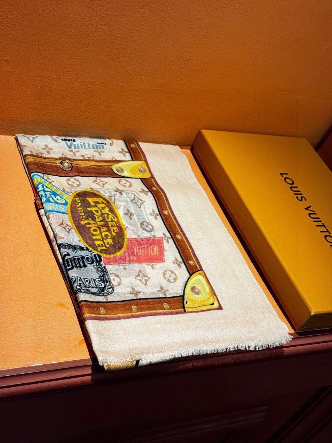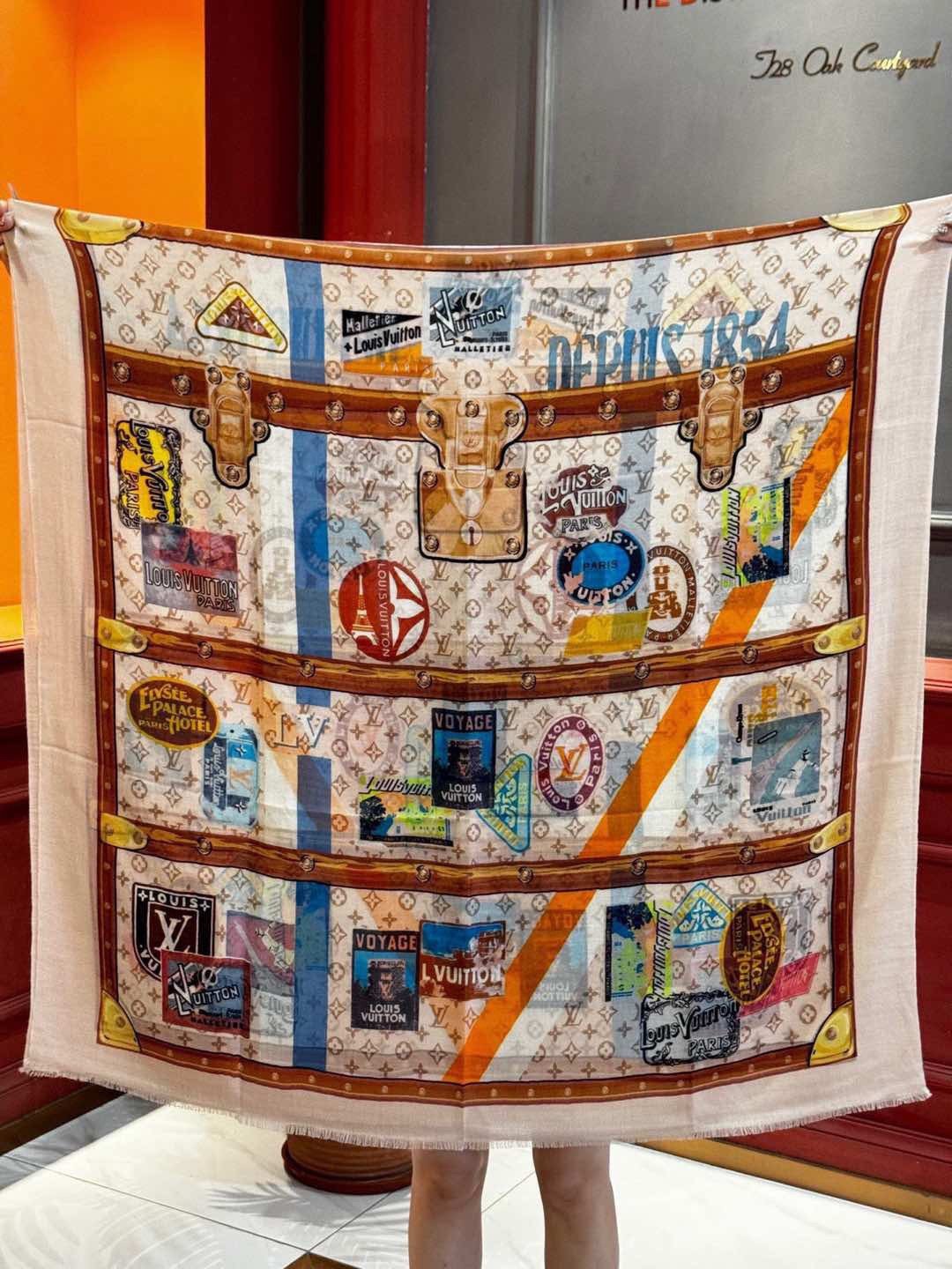 Louis Vuitton Monogram Trunk Stickers Shawl For Women 200cm