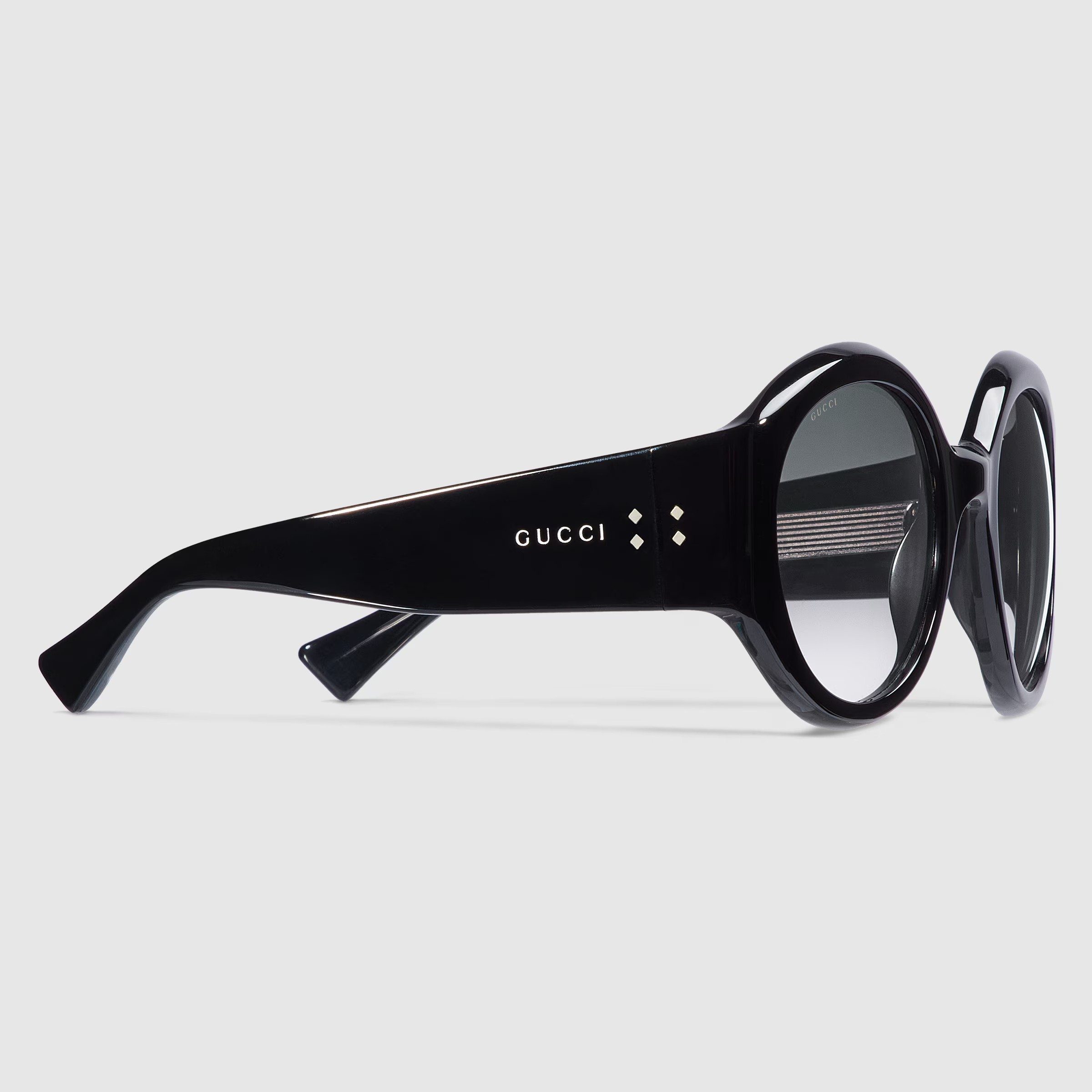 – Shiny black acetate temples with Gucci logo detail and rivets
