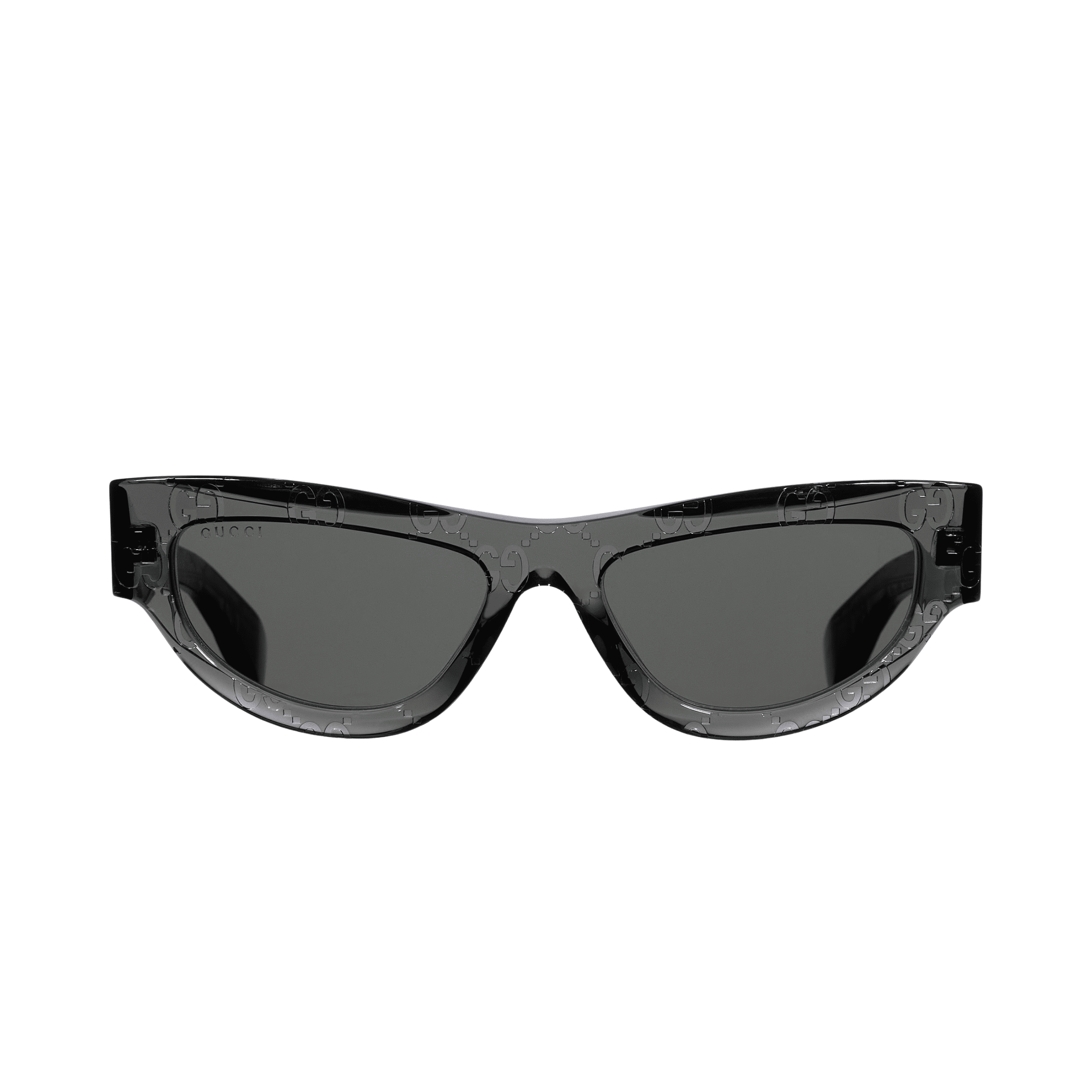 – Shiny transparent dark grey acetate temples with engraved allover GG motif