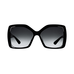 Square-frame sunglasses with gradient gray lenses and black enamel interlocking G logo cutouts on the temples.