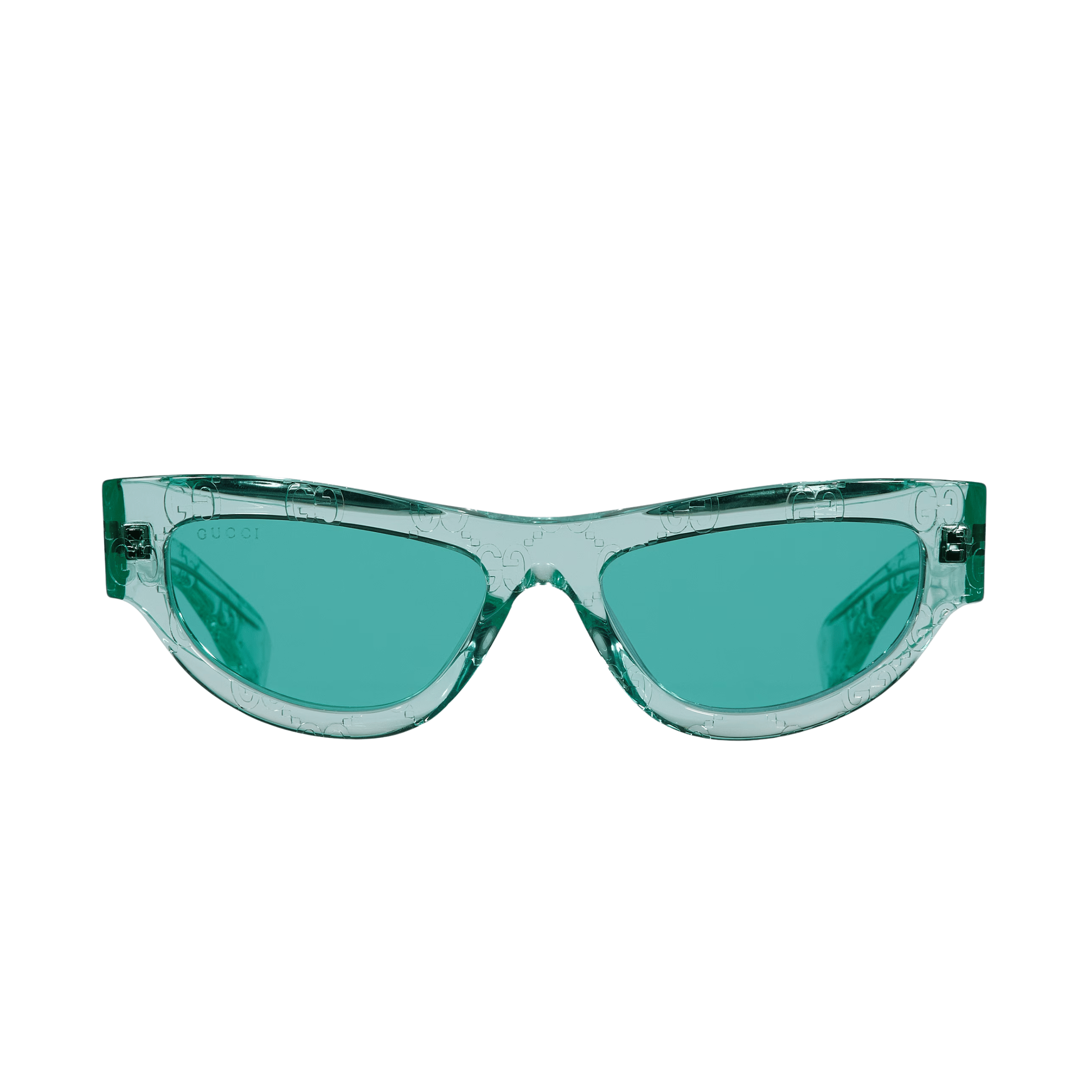 – Shiny transparent turquoise acetate temples with engraved allover GG motif