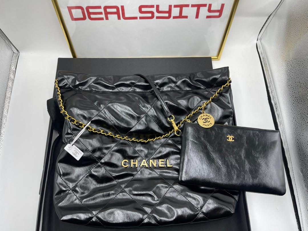 Chanel 22 Bag Handbag Black Shiny Calfskin 45cm