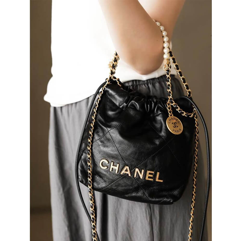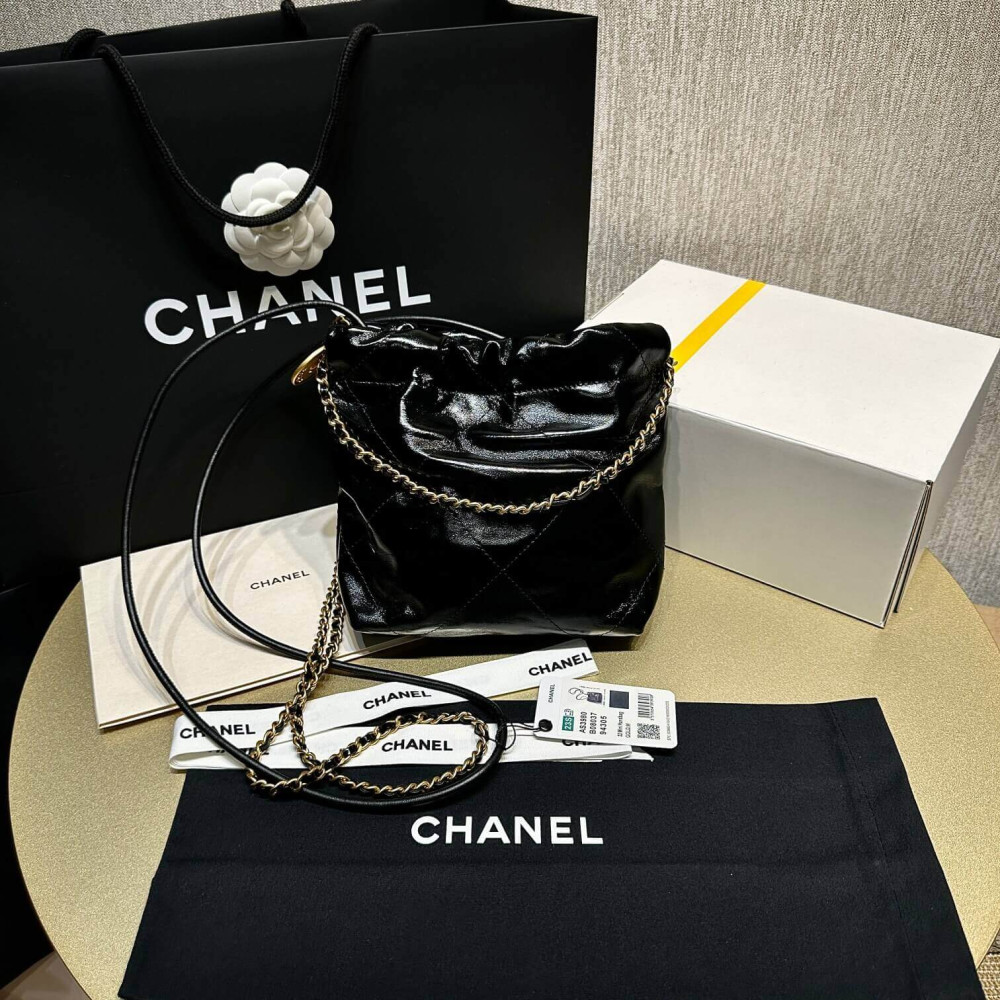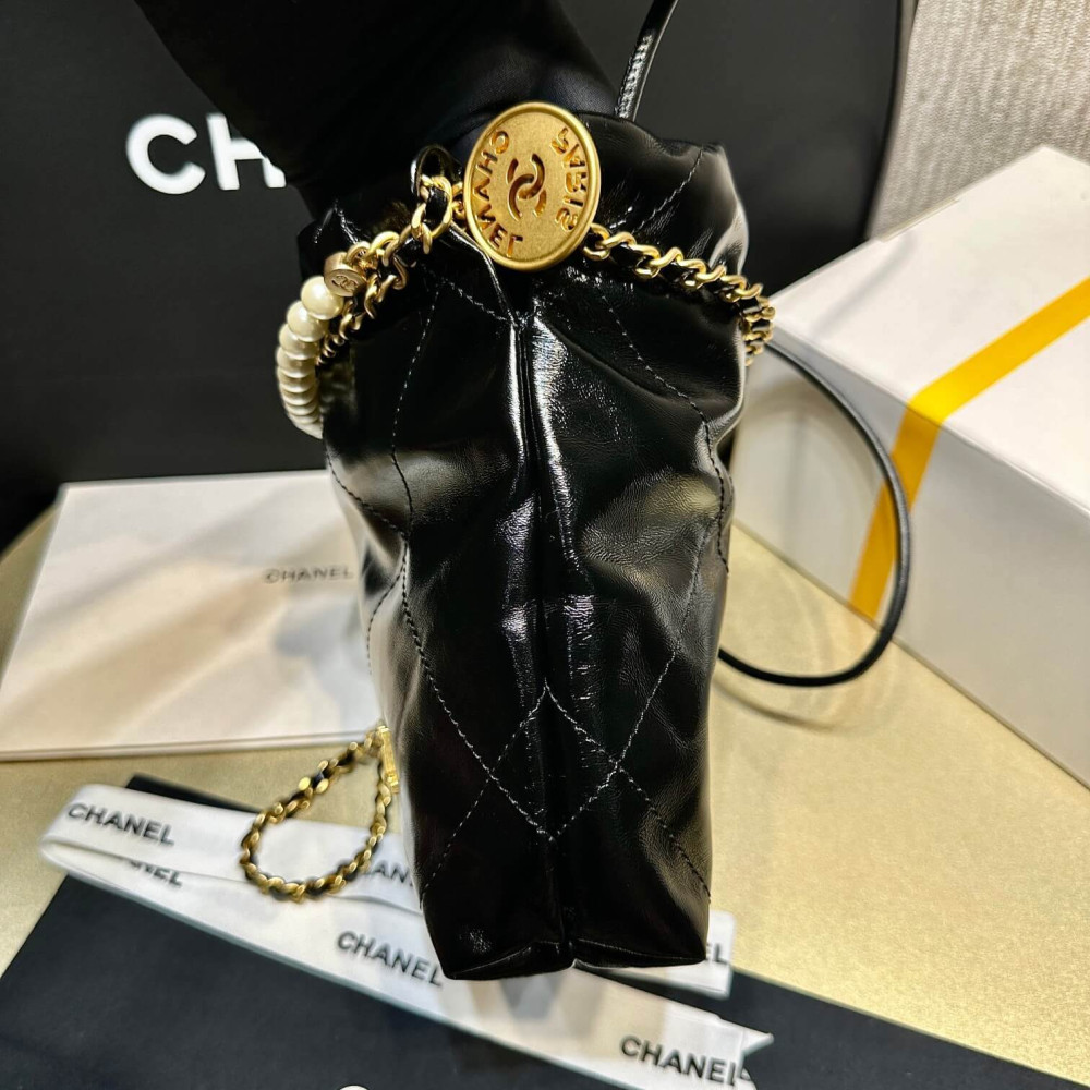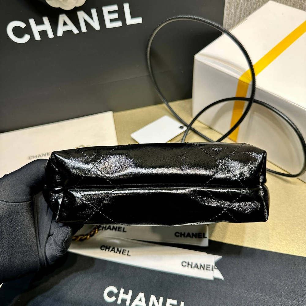 Furthermore, the distinctive double “C” logo of the Chanel 22 Mini Handbag is an emblem of sophistication and compactness, epitomizing its timeless appeal.