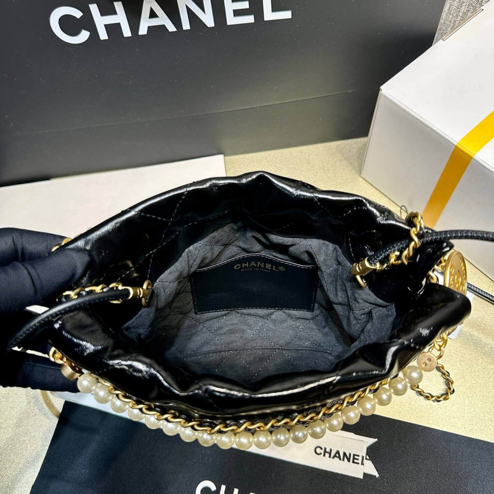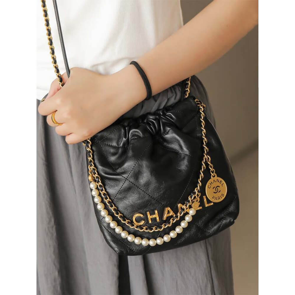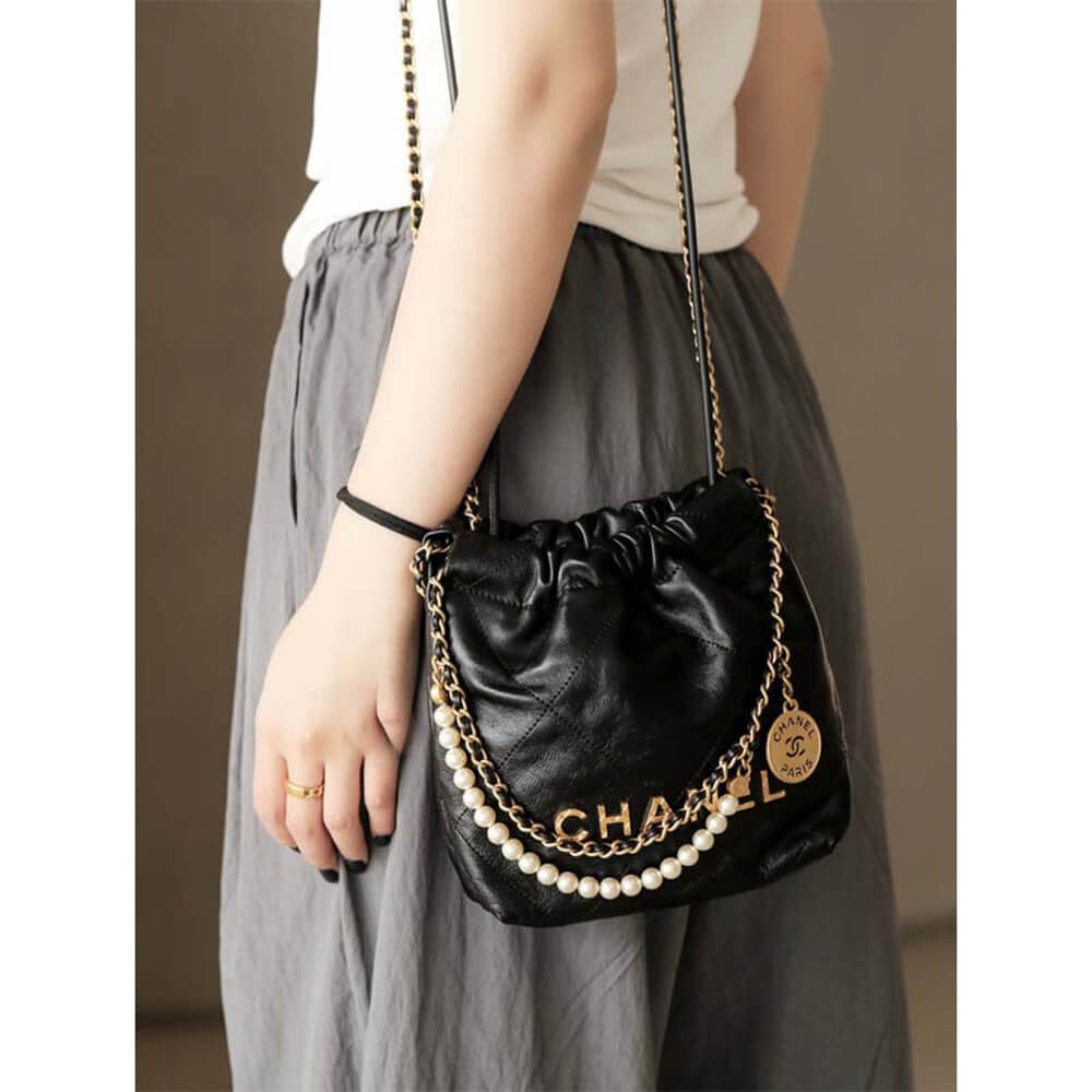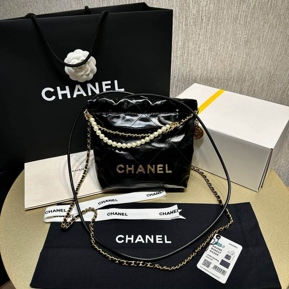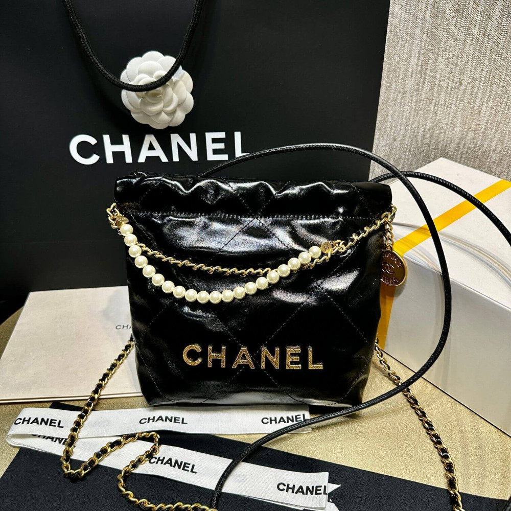 Furthermore, the distinctive double “C” logo of the Chanel 22 Mini Handbag is an emblem of sophistication and compactness, epitomizing its timeless appeal.