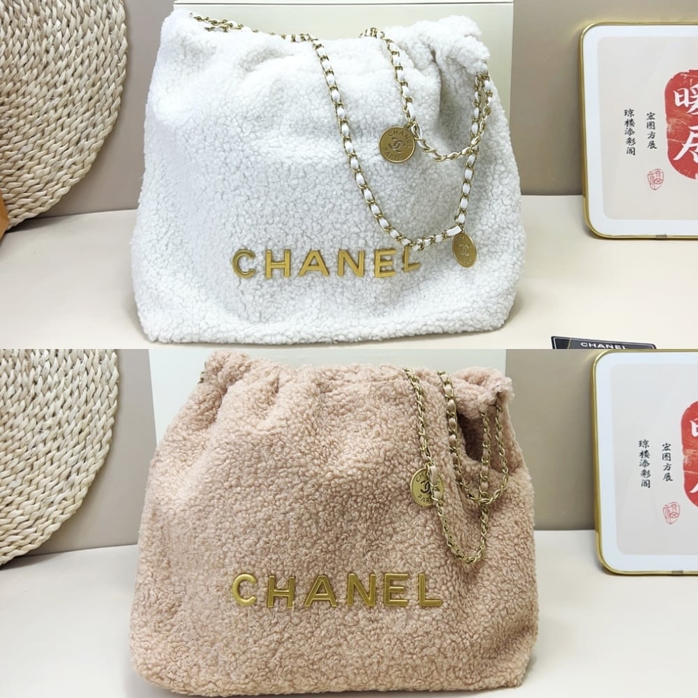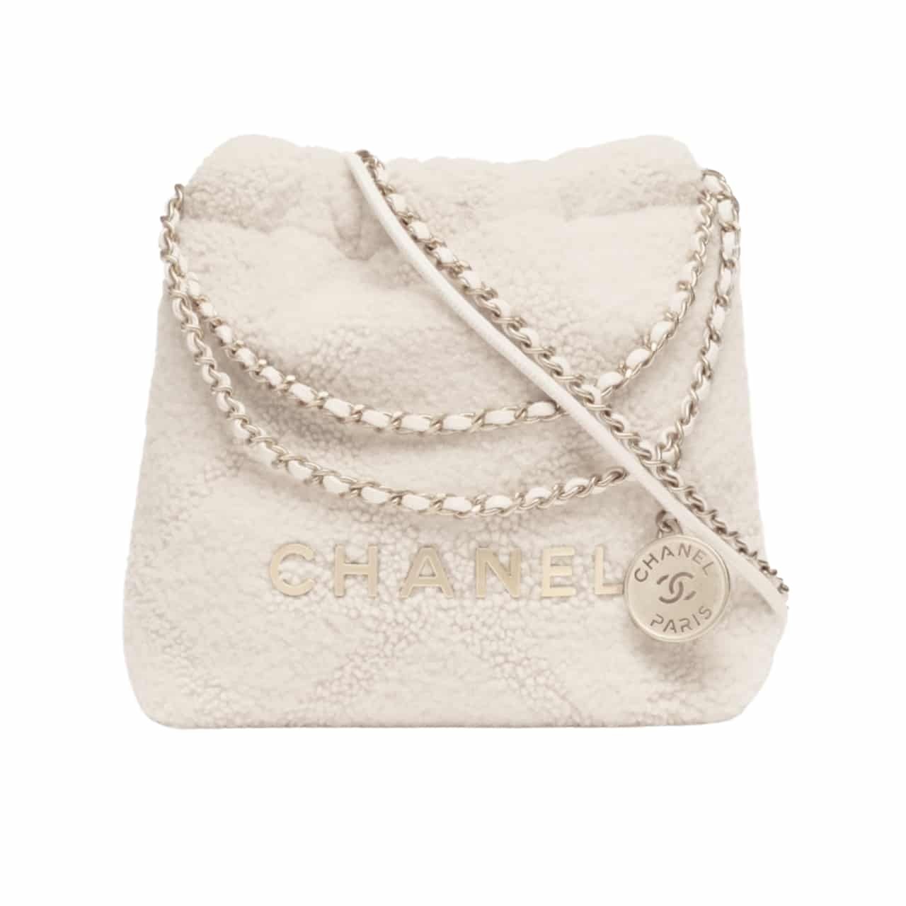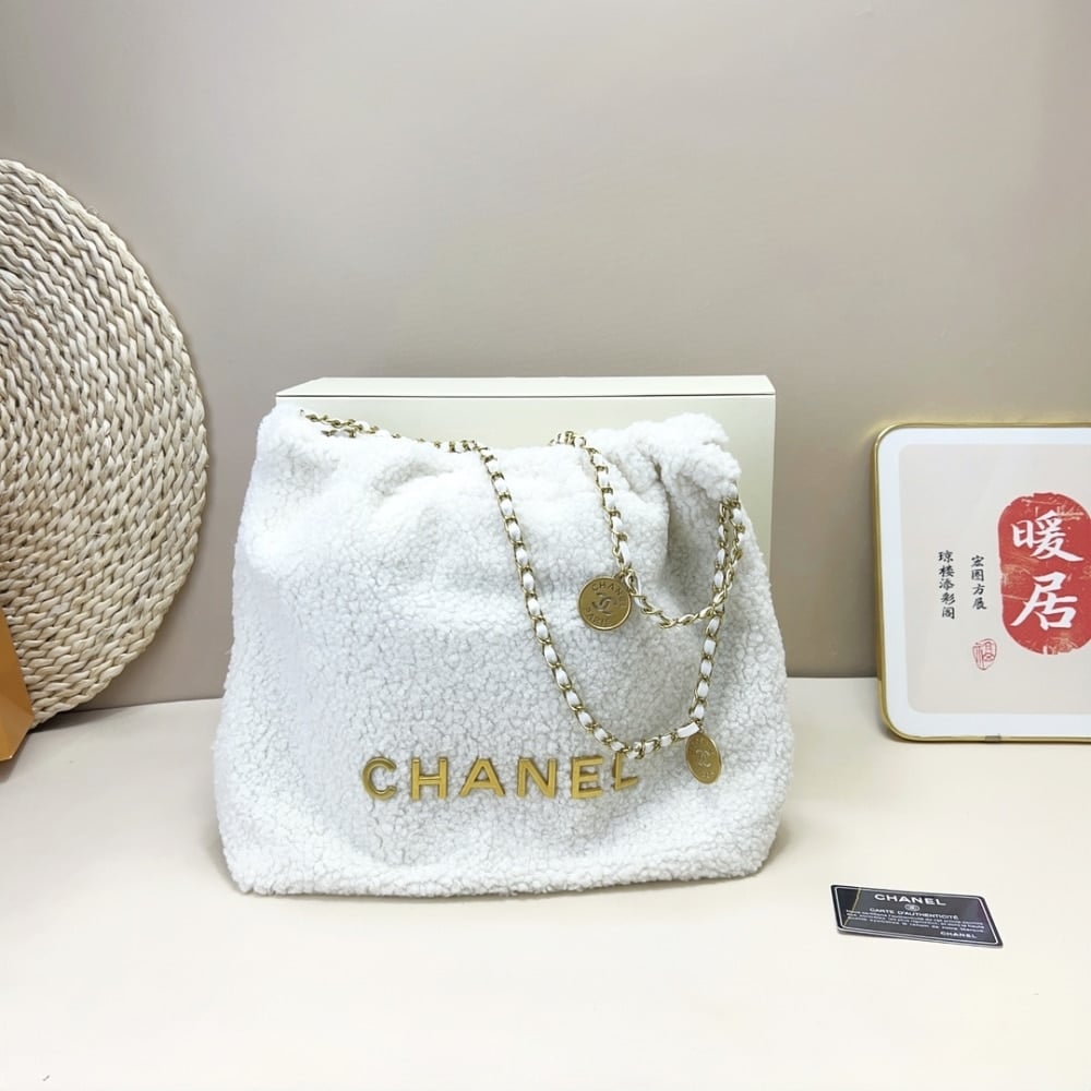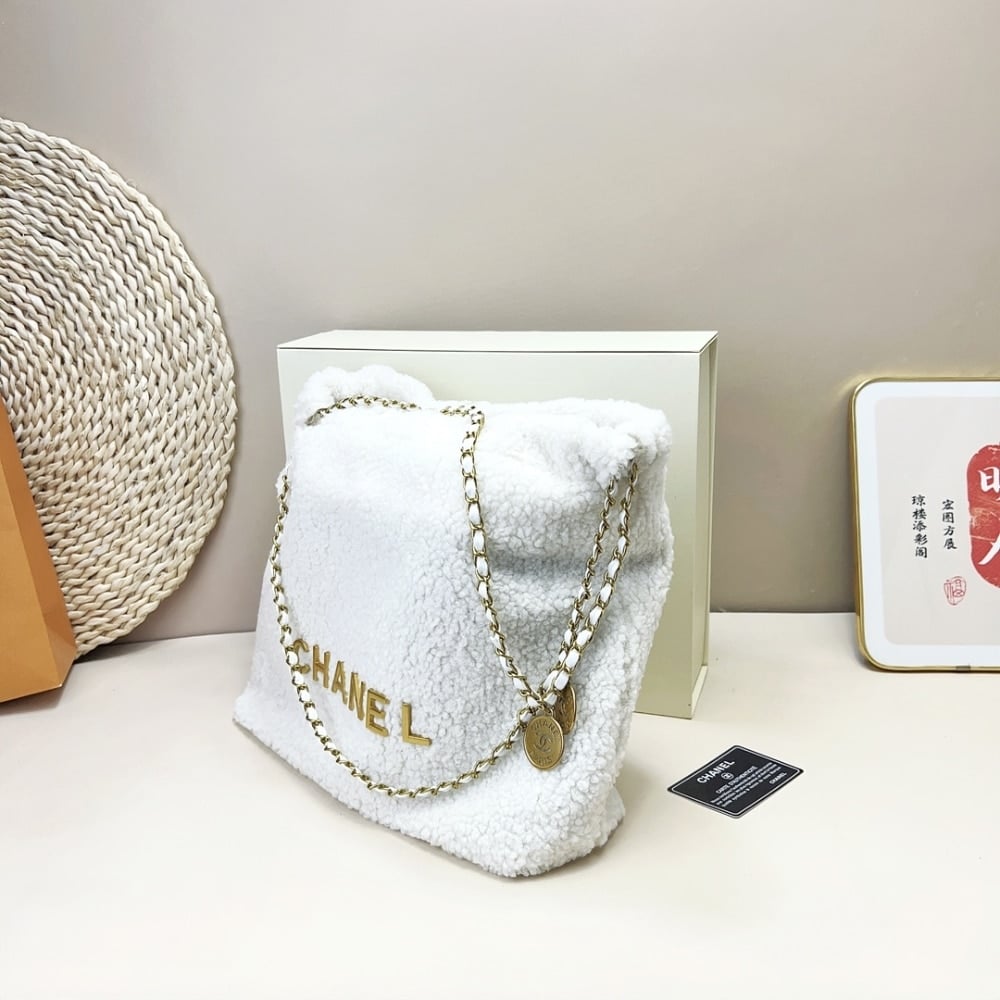 Chanel 22 Mini Handbag Shearling &Amp; Gold Tone Metal White 20Cm/7.9in