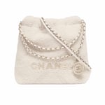 Chanel 22 Mini Handbag Shearling &Amp; Gold Tone Metal White 20Cm/7.9in
