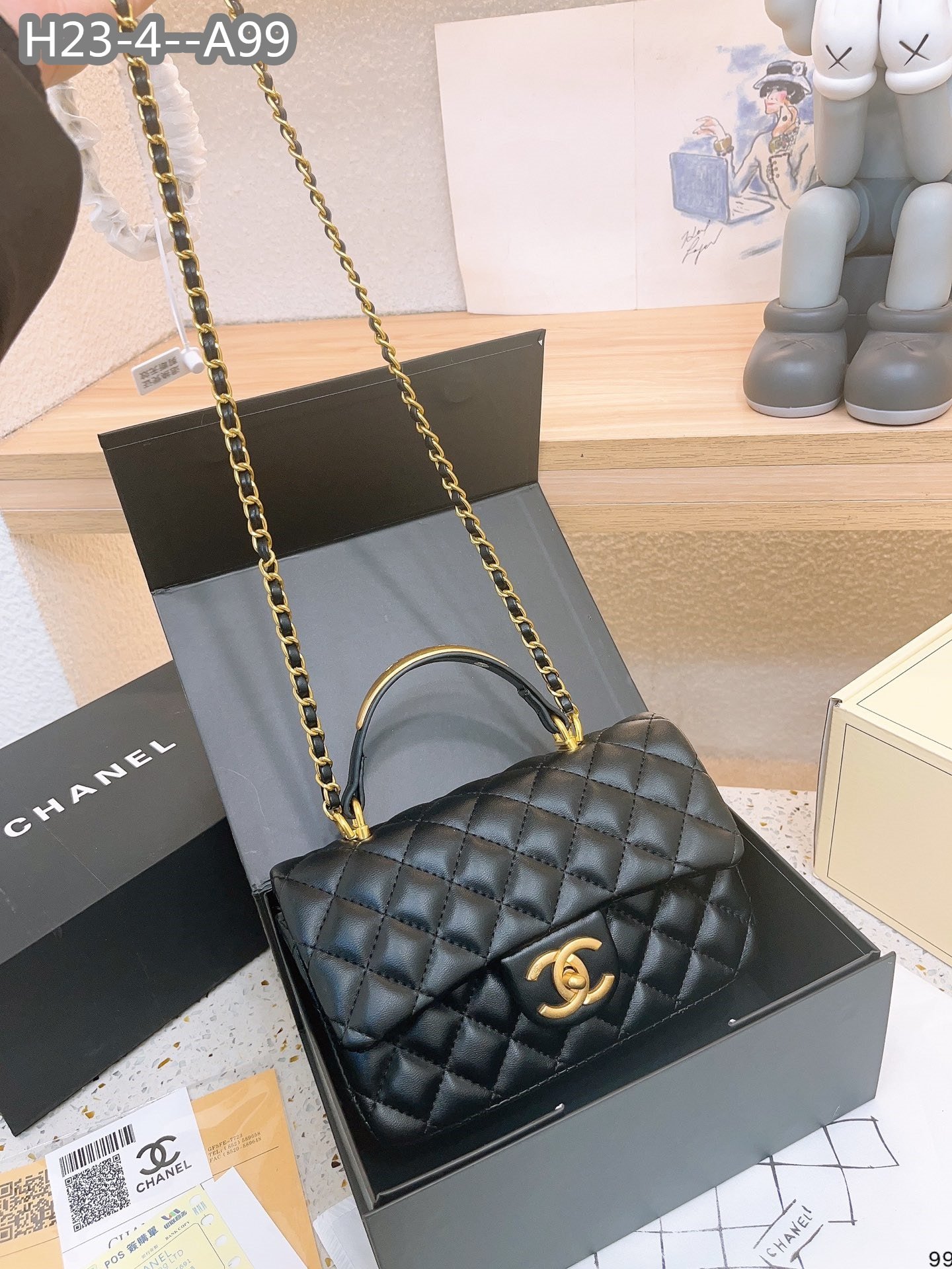 Chanel 22B Flap Bag With Gold Hardware Top Handle Black 21Cm/8in As2431