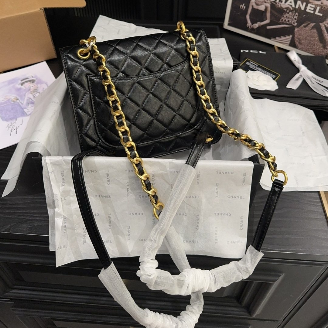 Chanel 23S Retro Backpack With Gold Hardware Black 22Cm/8.7in