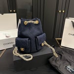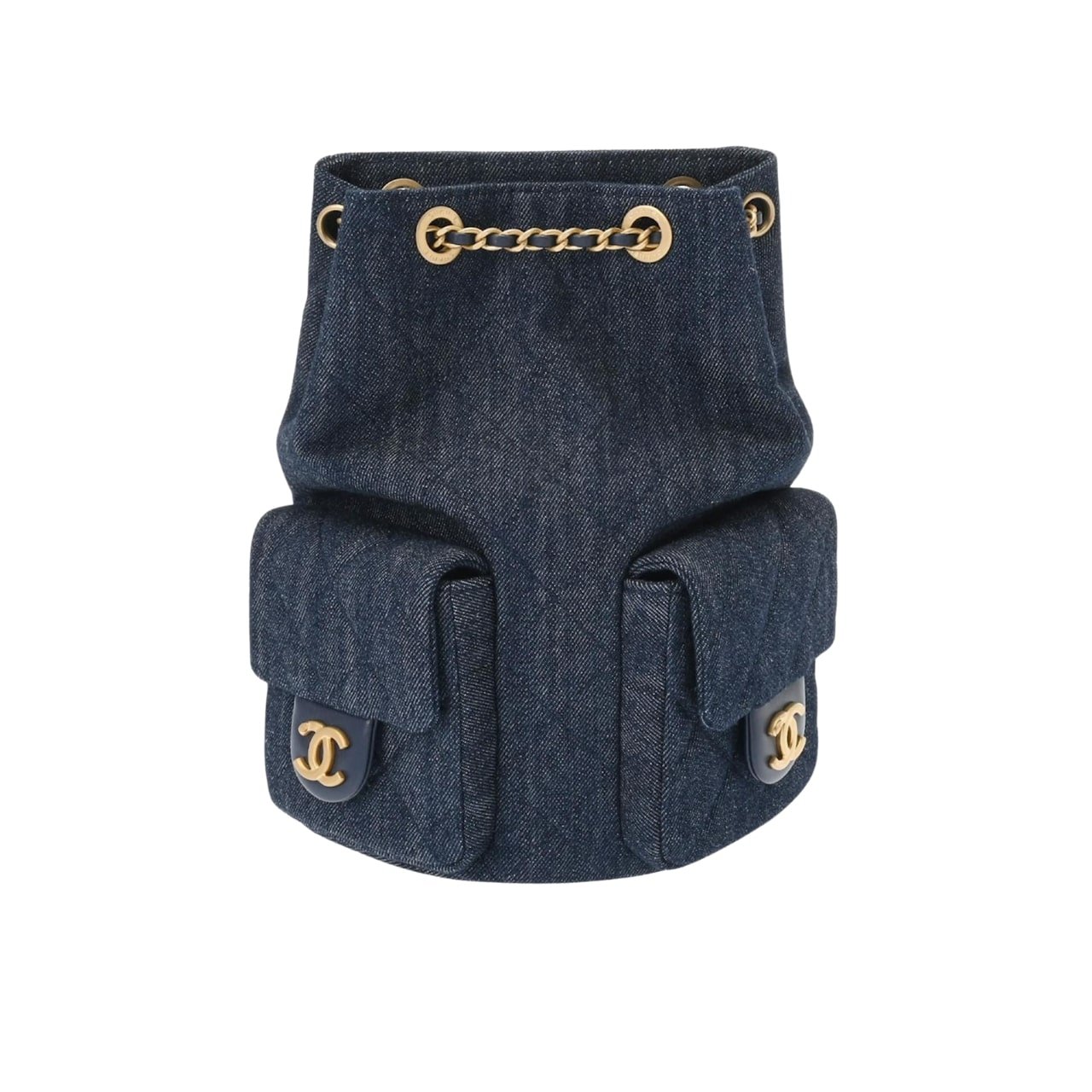 Chanel 25C Gold Tone Metal Denim Backpack Navy Blue 24Cm/10in