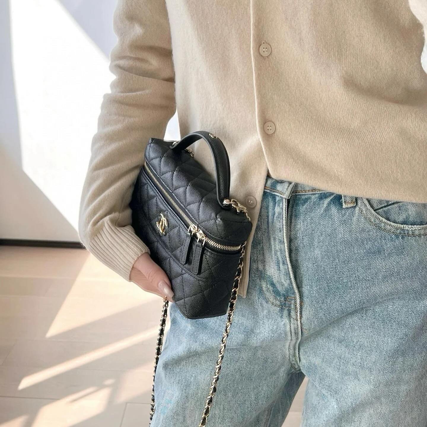 Chanel Small Graphic Frame Flap Bag Black 23cm