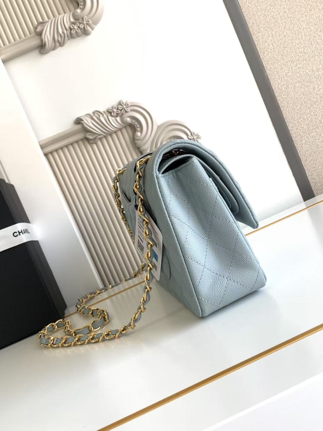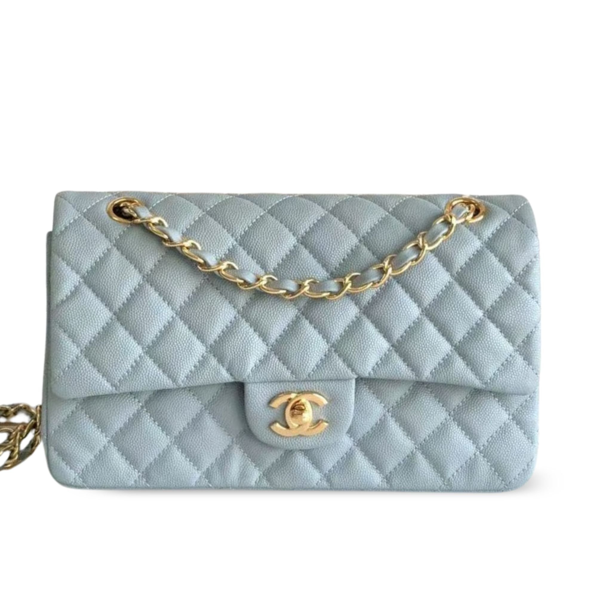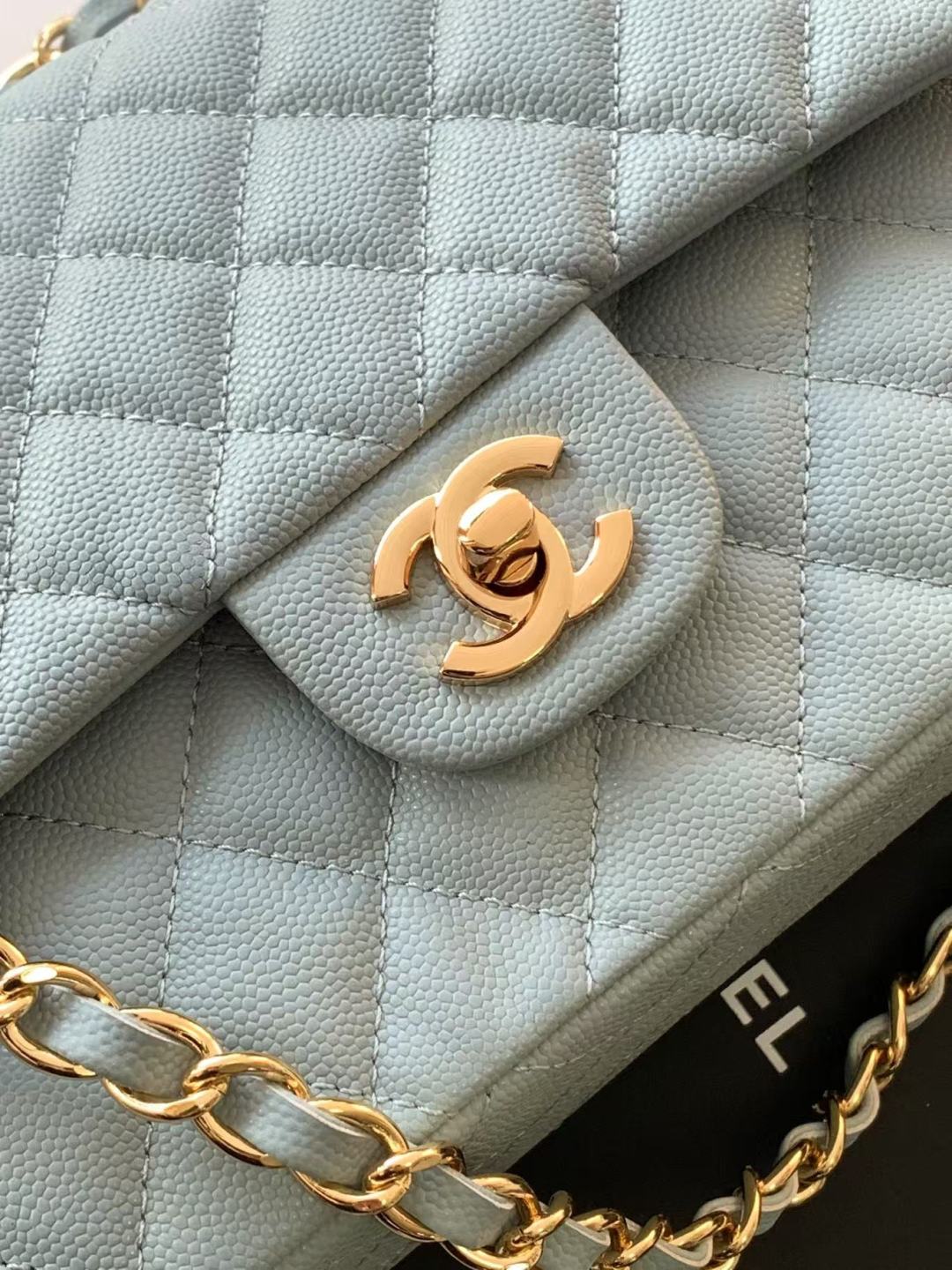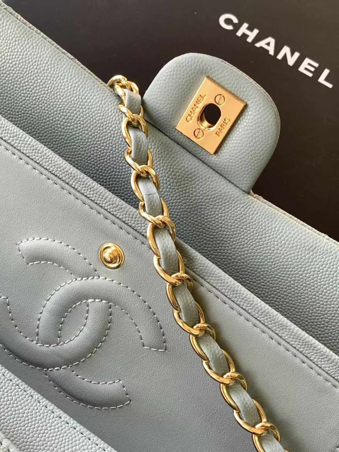 Chanel Classic Flap Bag 25 cm Light Blue Caviar Gold-Tone Hardware A01112