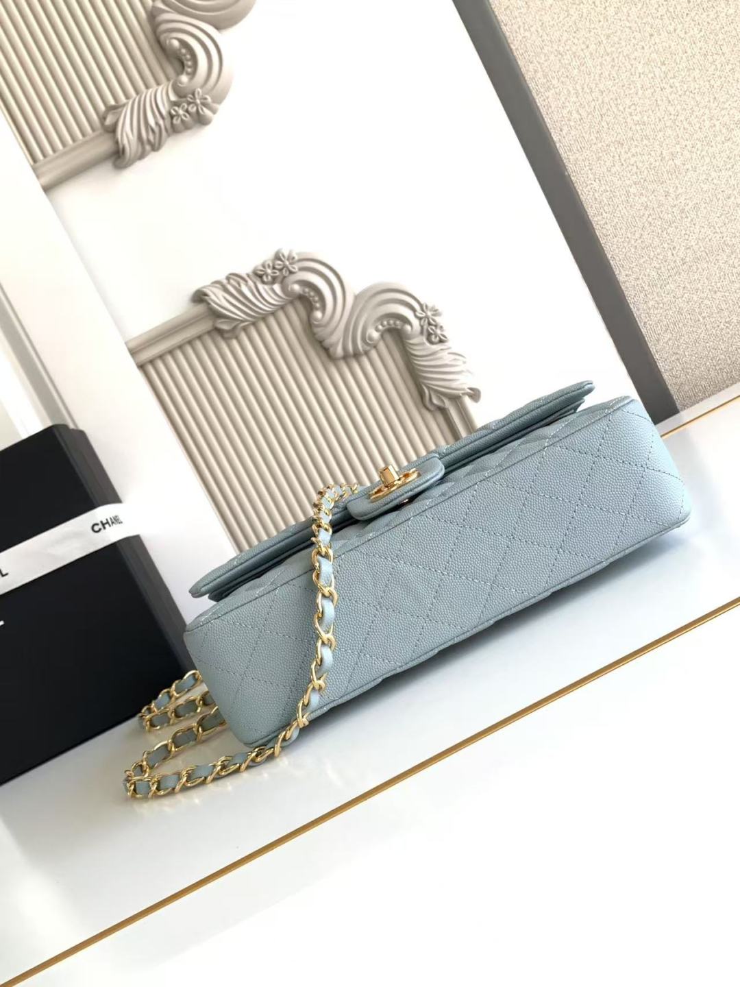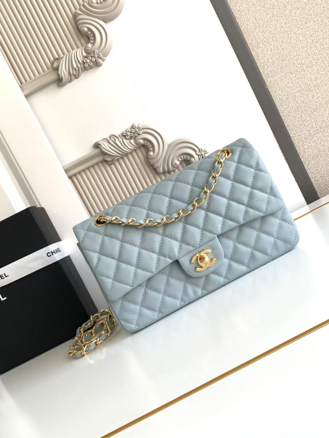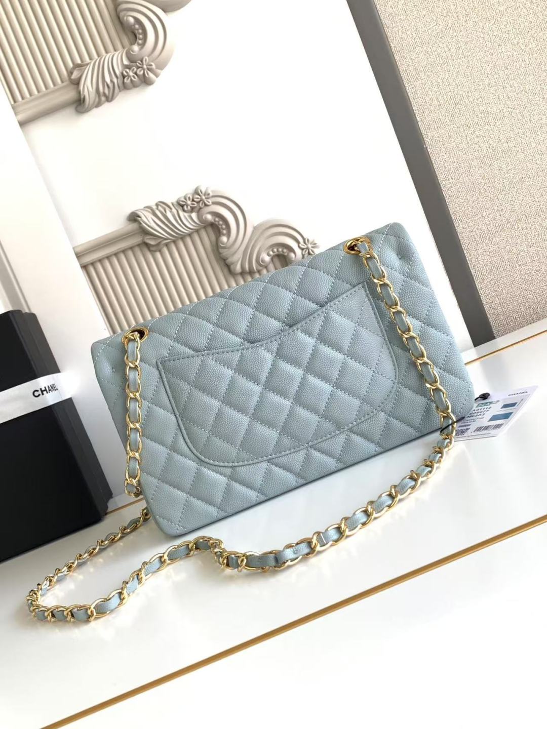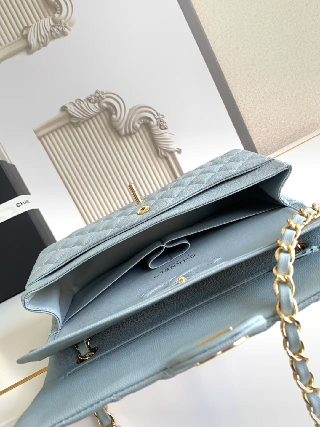Chanel Classic Flap Bag 25 cm Light Blue Caviar Gold-Tone Hardware A01112
