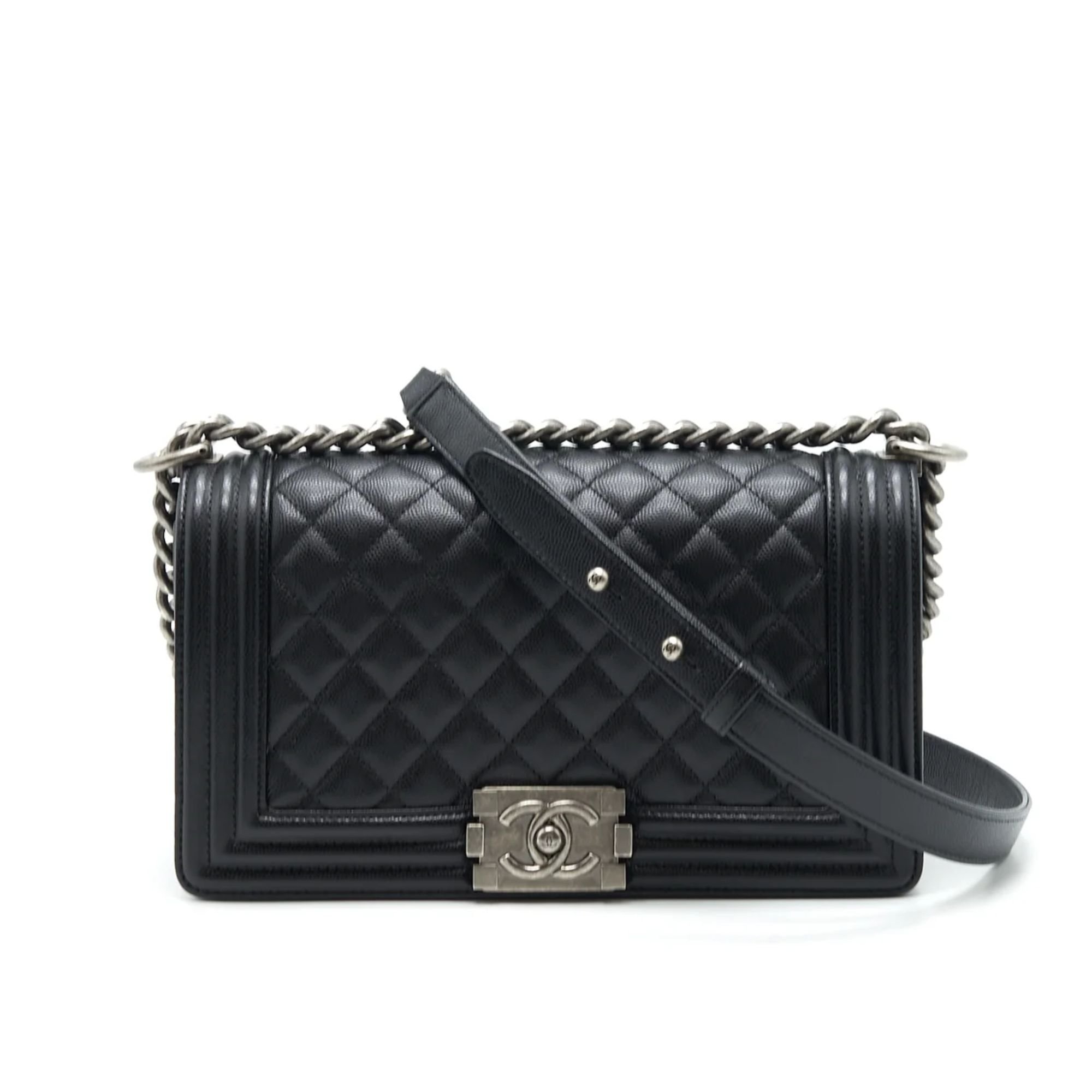 Chanel Medium Boy Black Caviar With Ruthenium Hardware 25cm