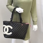 Chanel Calfskin Quilted Large Cambon Tote Black 41Cm/16in